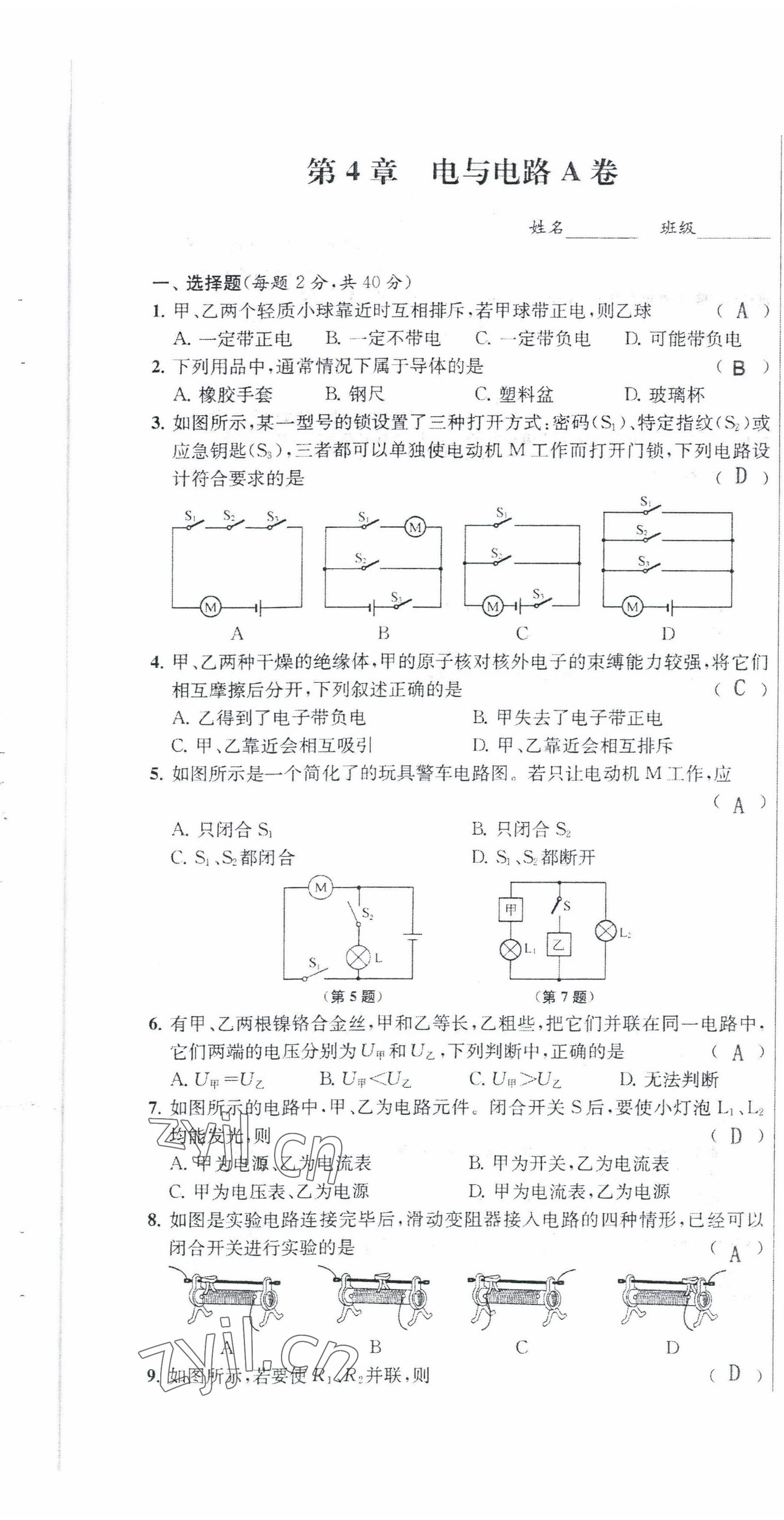 注:目前有些书本章节名称可能整理的还不是很完善,但都是按照顺序排列的,请同学们按照顺序仔细查找。练习册 2022年金试卷天津科学技术出版社八年级科学下册浙教版 答案主要是用来给同学们做完题方便对答案用的,请勿直接抄袭。