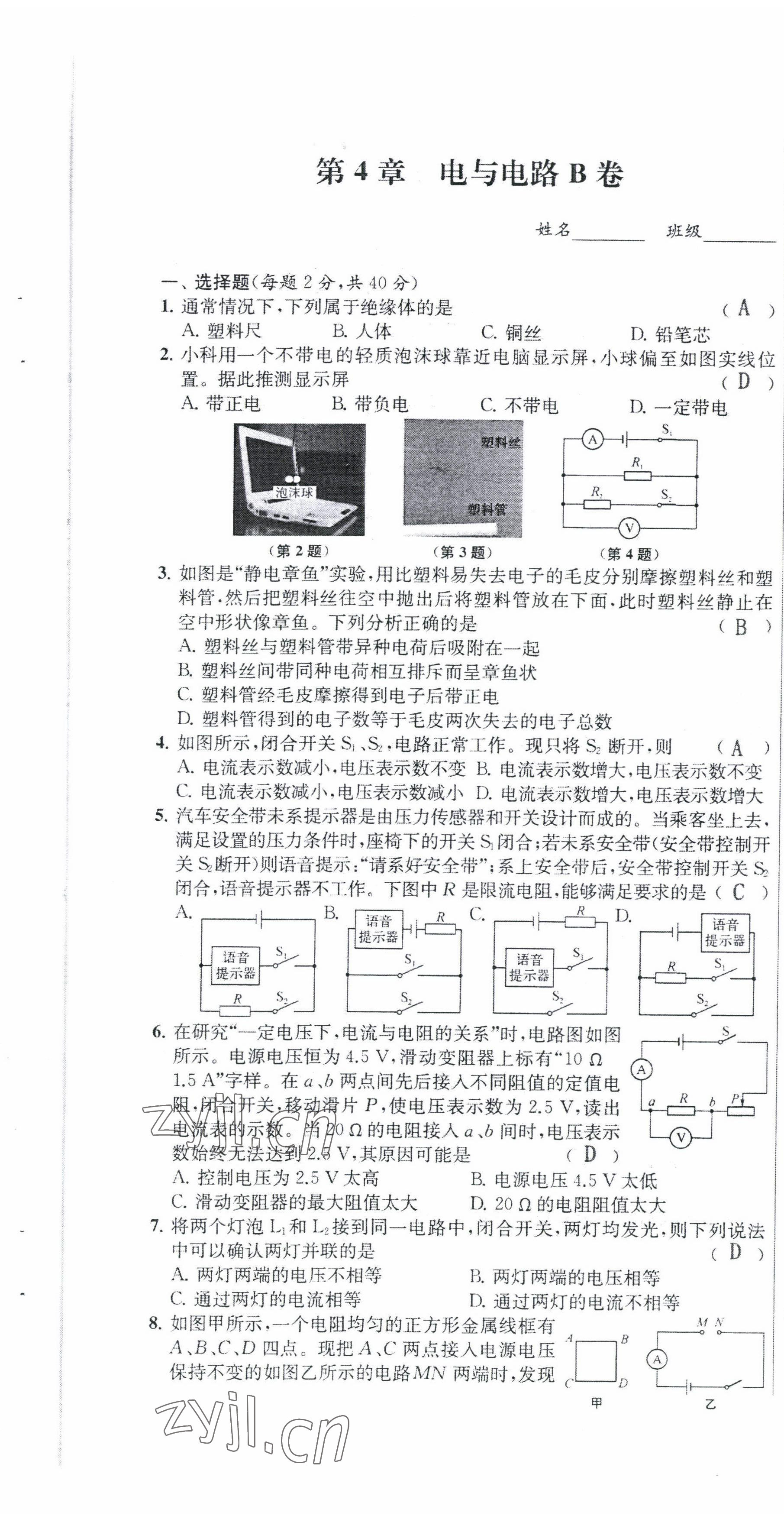 注:目前有些书本章节名称可能整理的还不是很完善,但都是按照顺序排列的,请同学们按照顺序仔细查找。练习册 2022年金试卷天津科学技术出版社八年级科学下册浙教版 答案主要是用来给同学们做完题方便对答案用的,请勿直接抄袭。