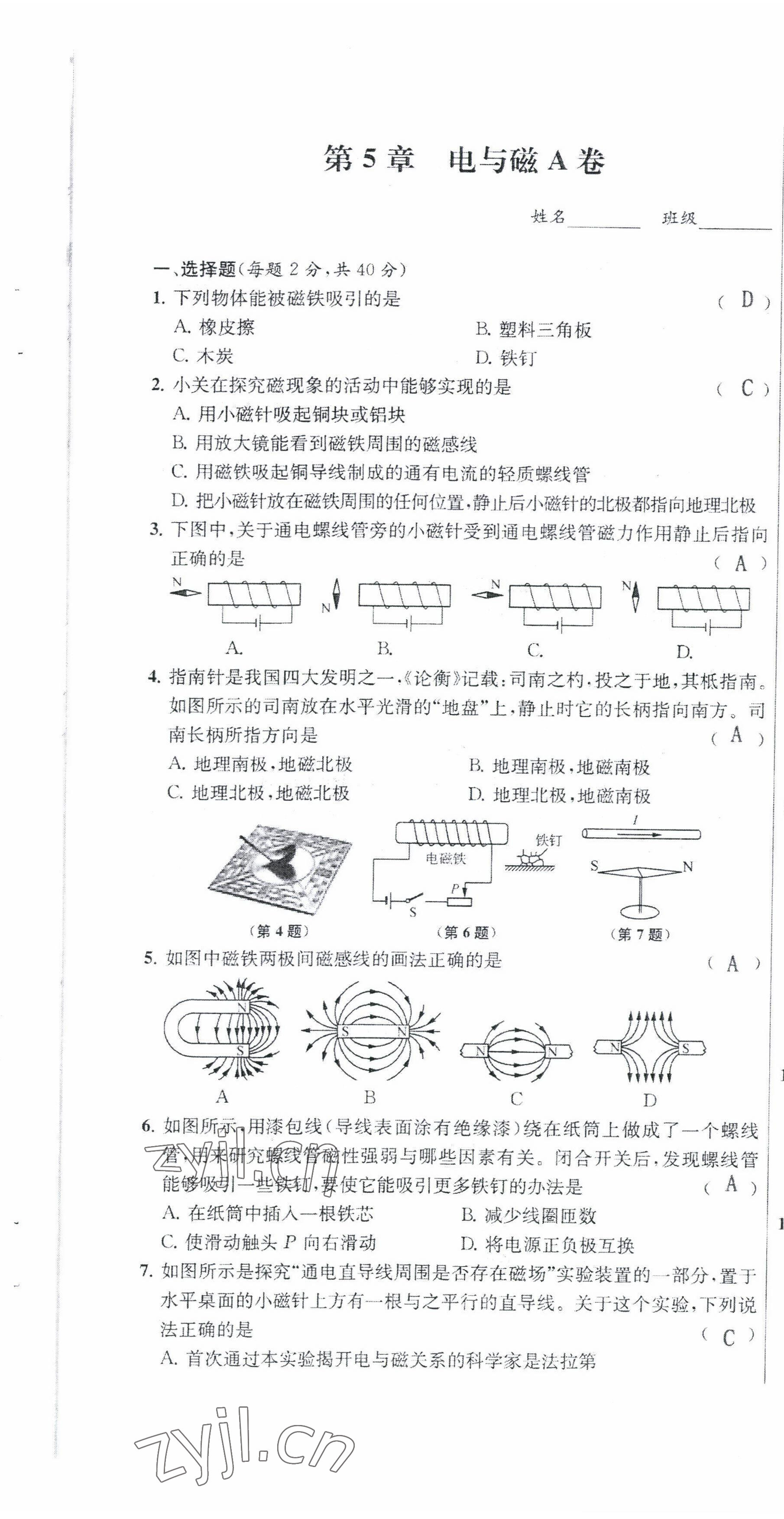 注:目前有些书本章节名称可能整理的还不是很完善,但都是按照顺序排列的,请同学们按照顺序仔细查找。练习册 2022年金试卷天津科学技术出版社八年级科学下册浙教版 答案主要是用来给同学们做完题方便对答案用的,请勿直接抄袭。