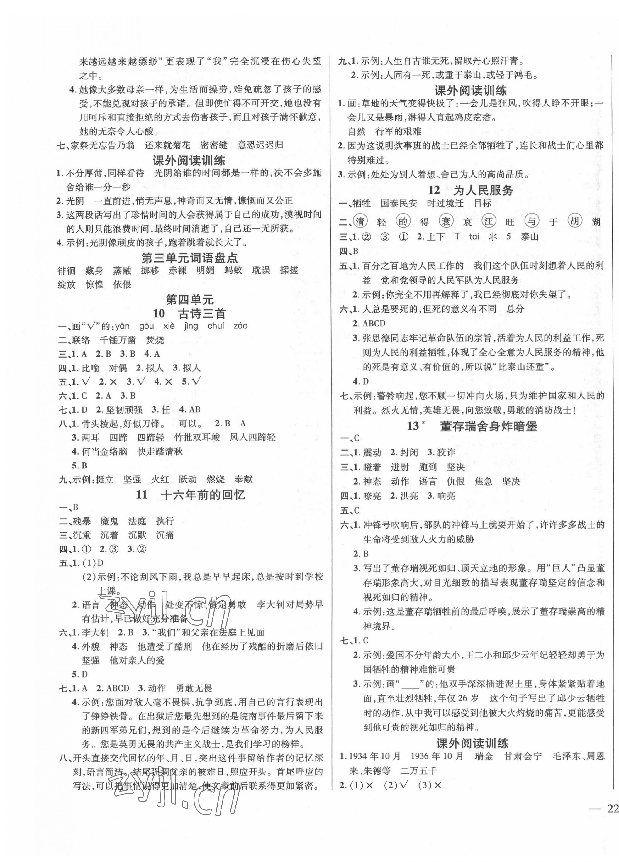 2022年名师一点通同步练习册六年级语文下册人教版