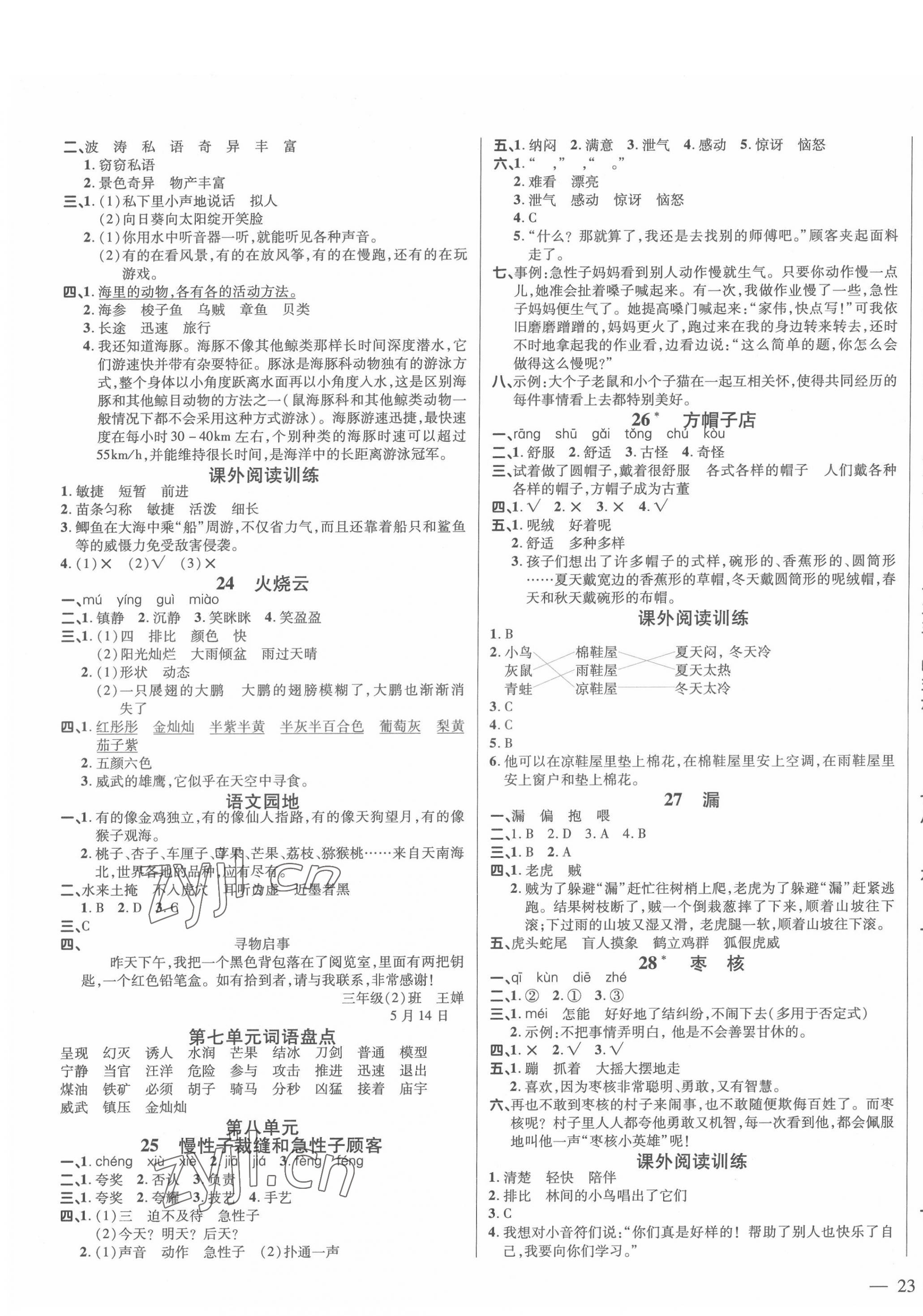 注:目前有些书本章节名称可能整理的还不是很完善,但都是按照顺序排列的,请同学们按照顺序仔细查找。练习册 2022年名师一点通同步练习册三年级语文下册人教版 答案主要是用来给同学们做完题方便对答案用的,请勿直接抄袭。