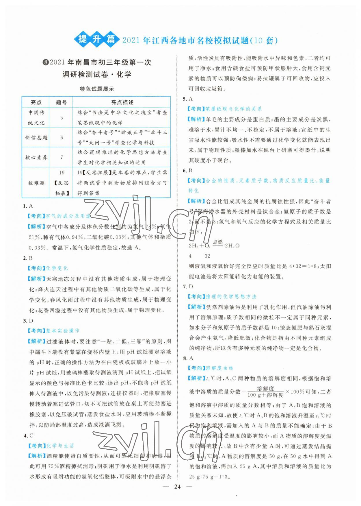 注:目前有些书本章节名称可能整理的还不是很完善,但都是按照顺序排列的,请同学们按照顺序仔细查找。练习册 2022年中考金卷中考试题精编化学江西专版 答案主要是用来给同学们做完题方便对答案用的,请勿直接抄袭。