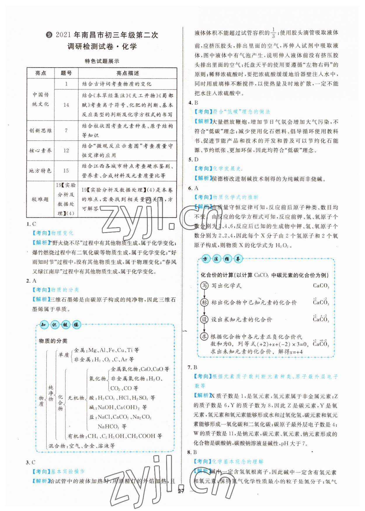 2022年中考金卷中考试题精编化学江西专版