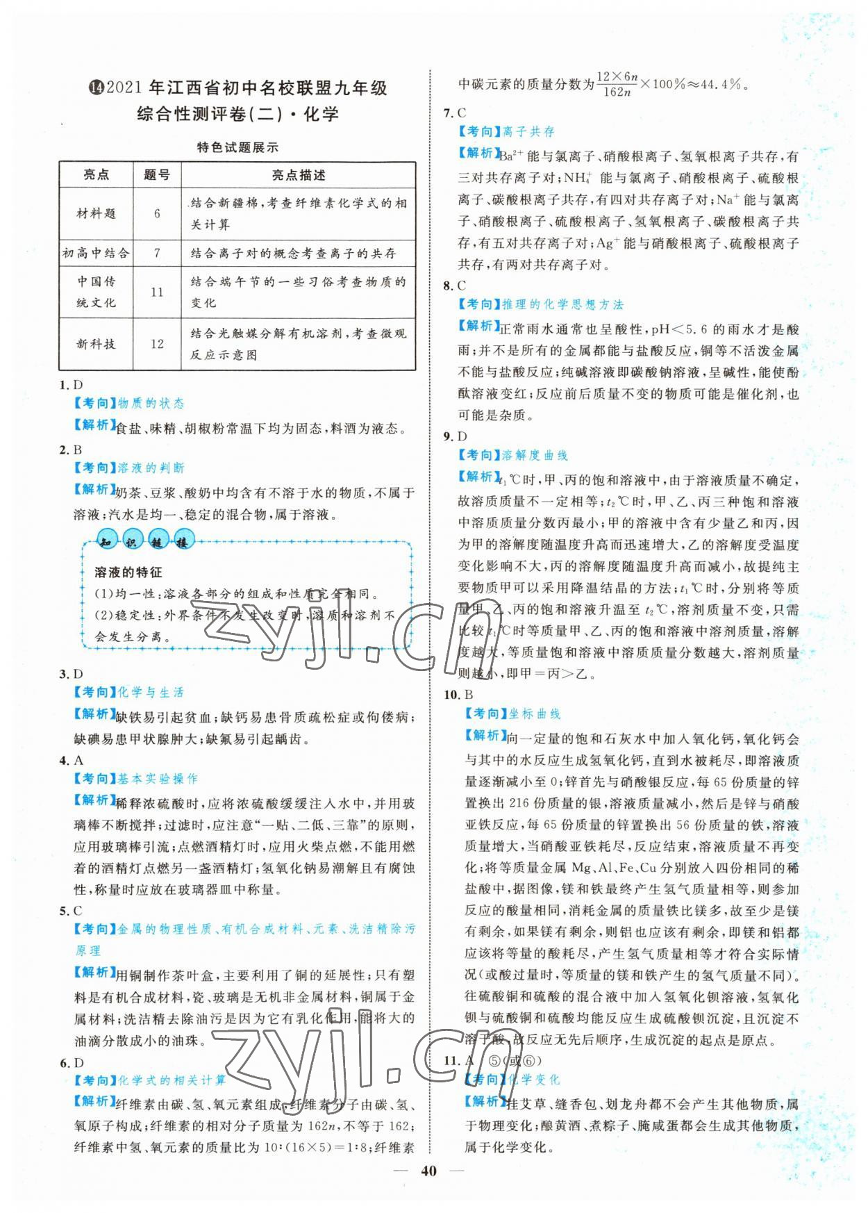 注:目前有些书本章节名称可能整理的还不是很完善,但都是按照顺序排列的,请同学们按照顺序仔细查找。练习册 2022年中考金卷中考试题精编化学江西专版 答案主要是用来给同学们做完题方便对答案用的,请勿直接抄袭。
