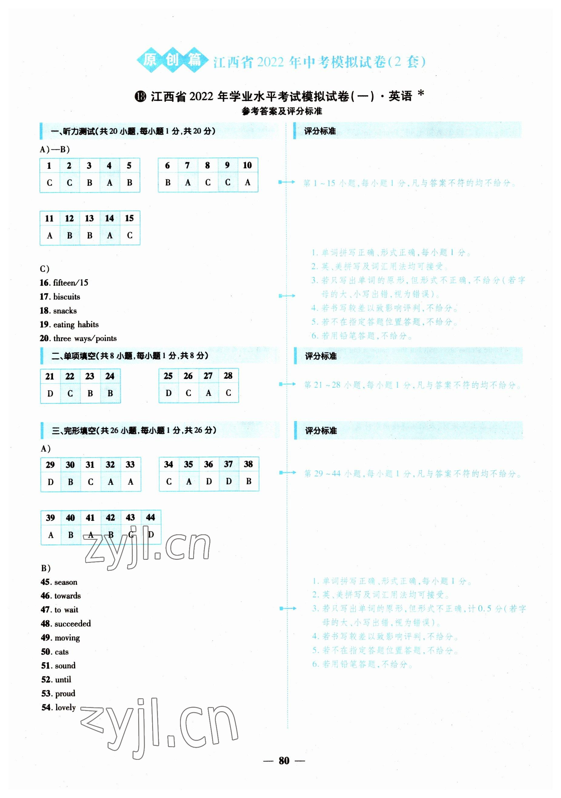 注:目前有些书本章节名称可能整理的还不是很完善,但都是按照顺序排列的,请同学们按照顺序仔细查找。练习册 2022年中考金卷中考试题精编英语江西专版 答案主要是用来给同学们做完题方便对答案用的,请勿直接抄袭。