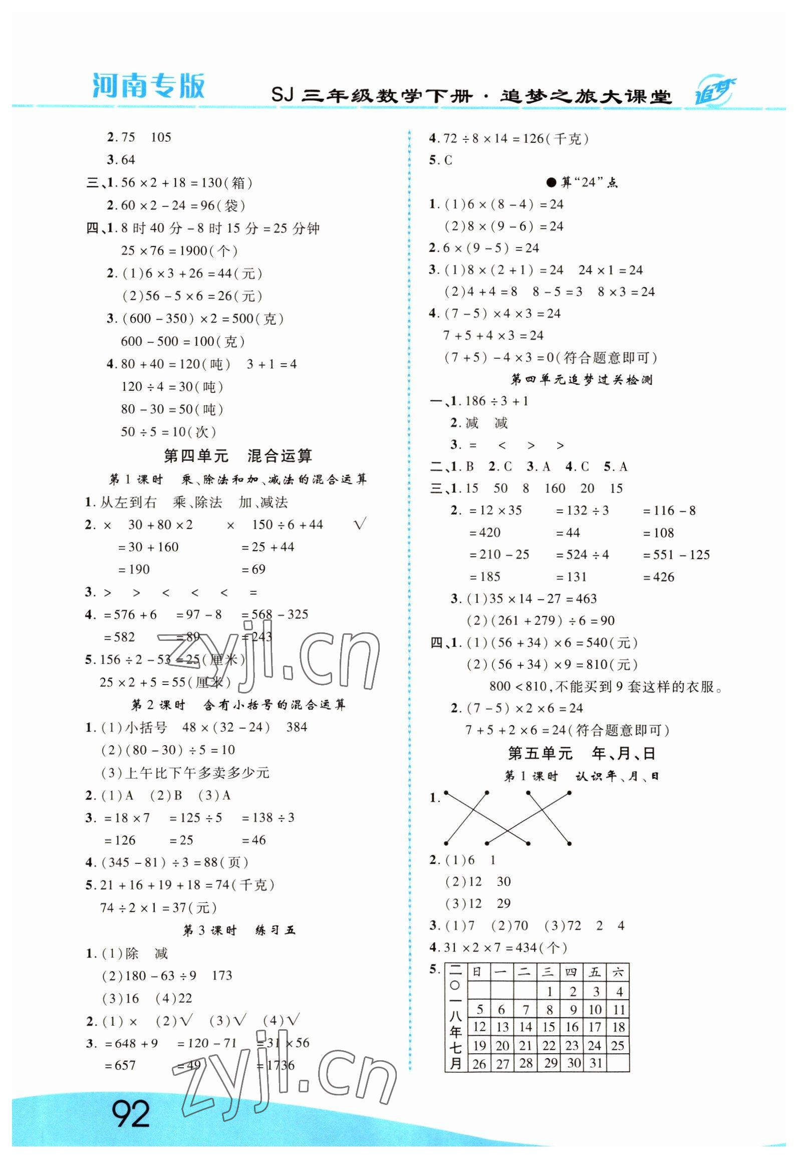 2022年追梦之旅大课堂三年级数学下册苏教版河南专版