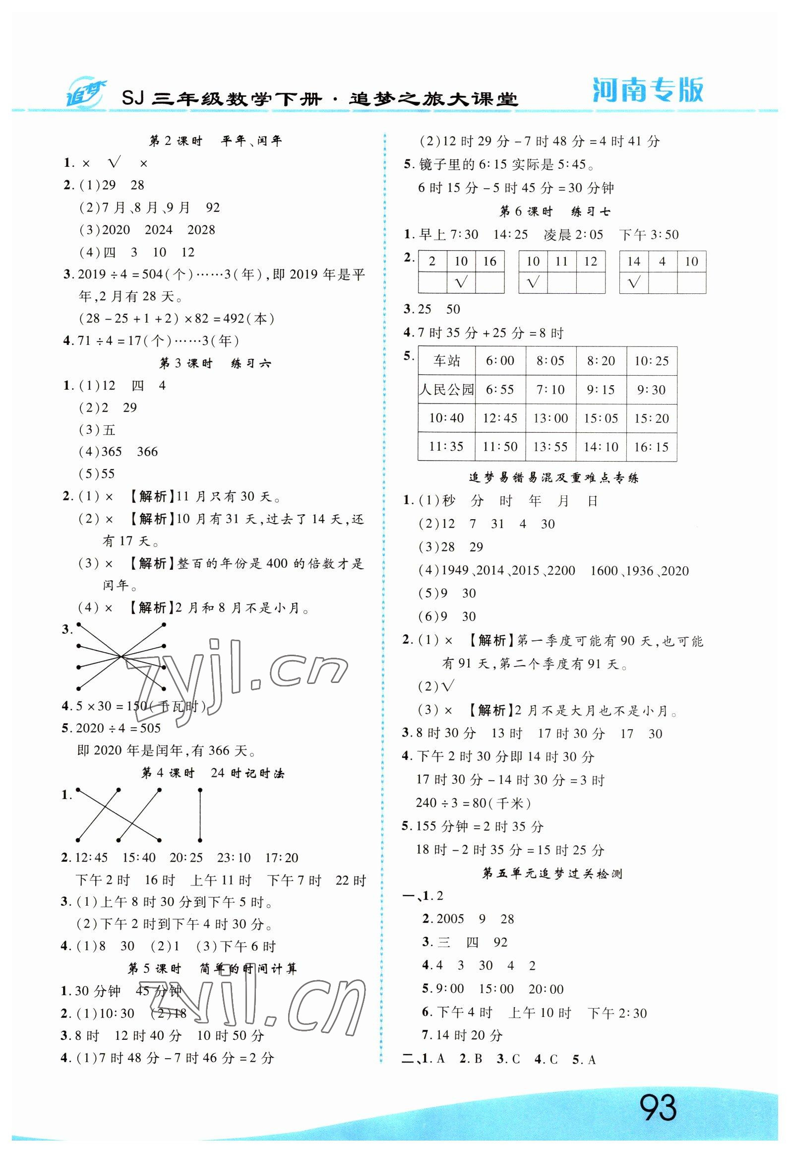 2022年追梦之旅大课堂三年级数学下册苏教版河南专版