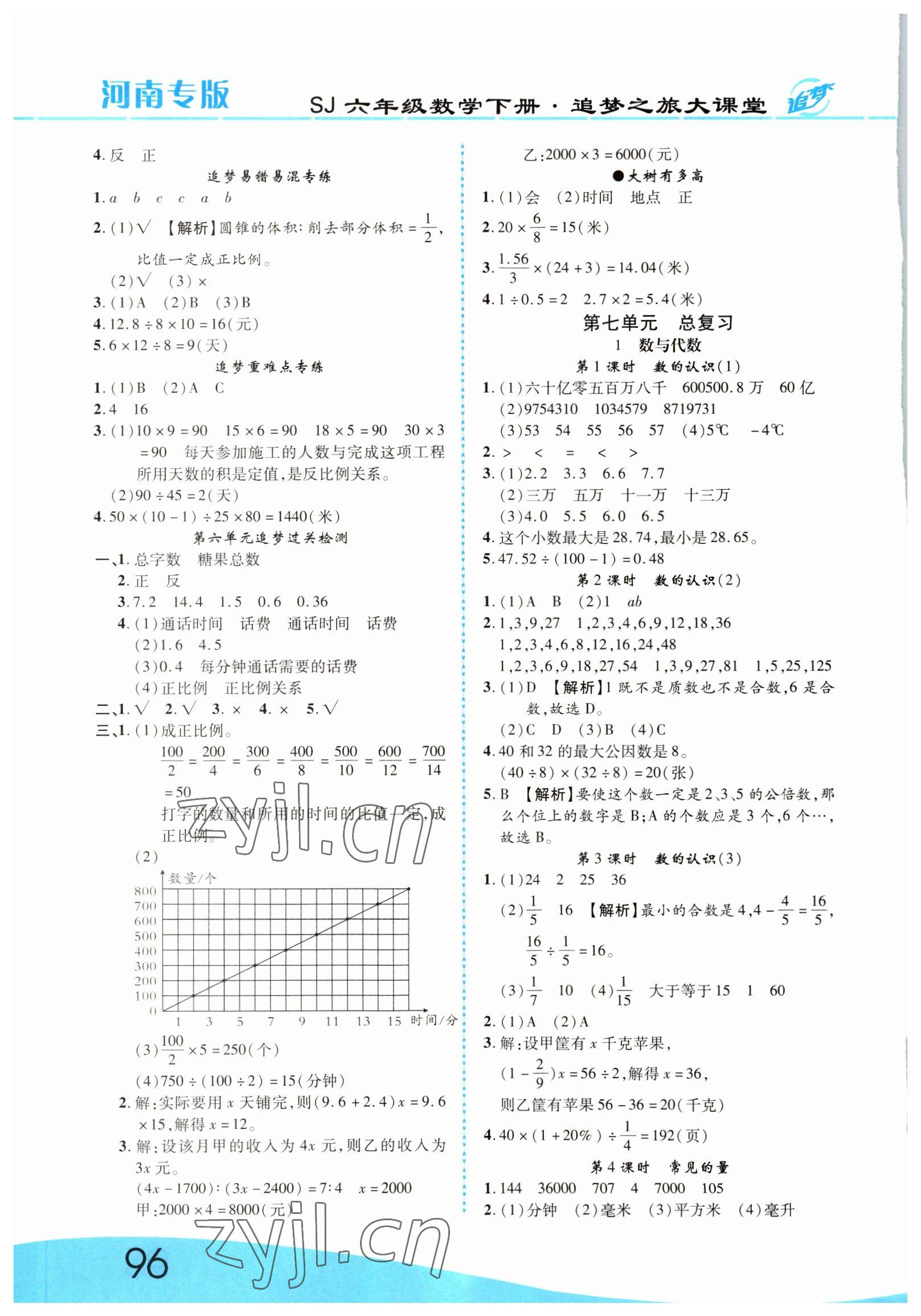 2022年追梦之旅大课堂六年级数学下册苏教版河南专版