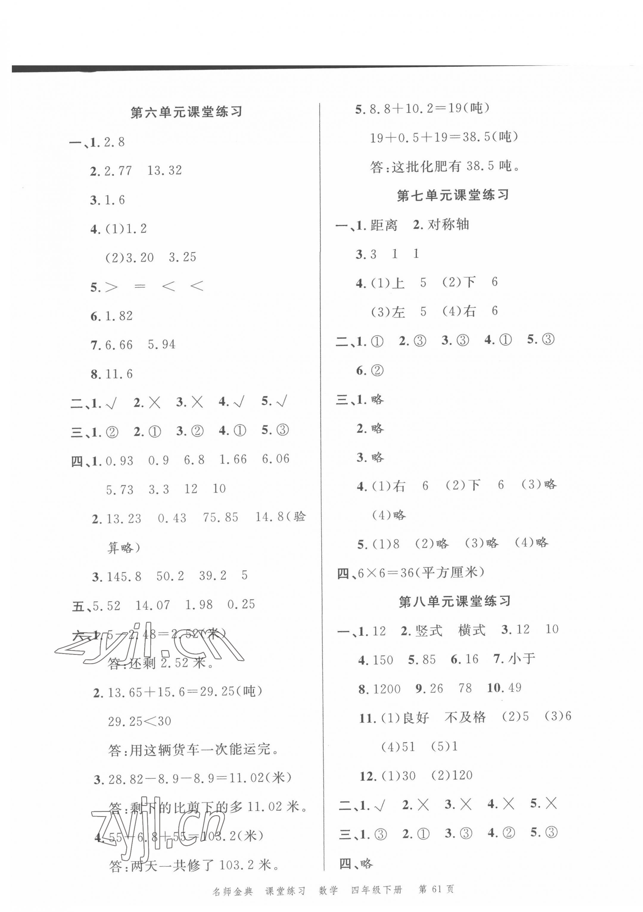 注:目前有些书本章节名称可能整理的还不是很完善,但都是按照顺序排列的,请同学们按照顺序仔细查找。练习册 2022年南粤学典名师金典测试卷四年级数学下册人教版 答案主要是用来给同学们做完题方便对答案用的,请勿直接抄袭。