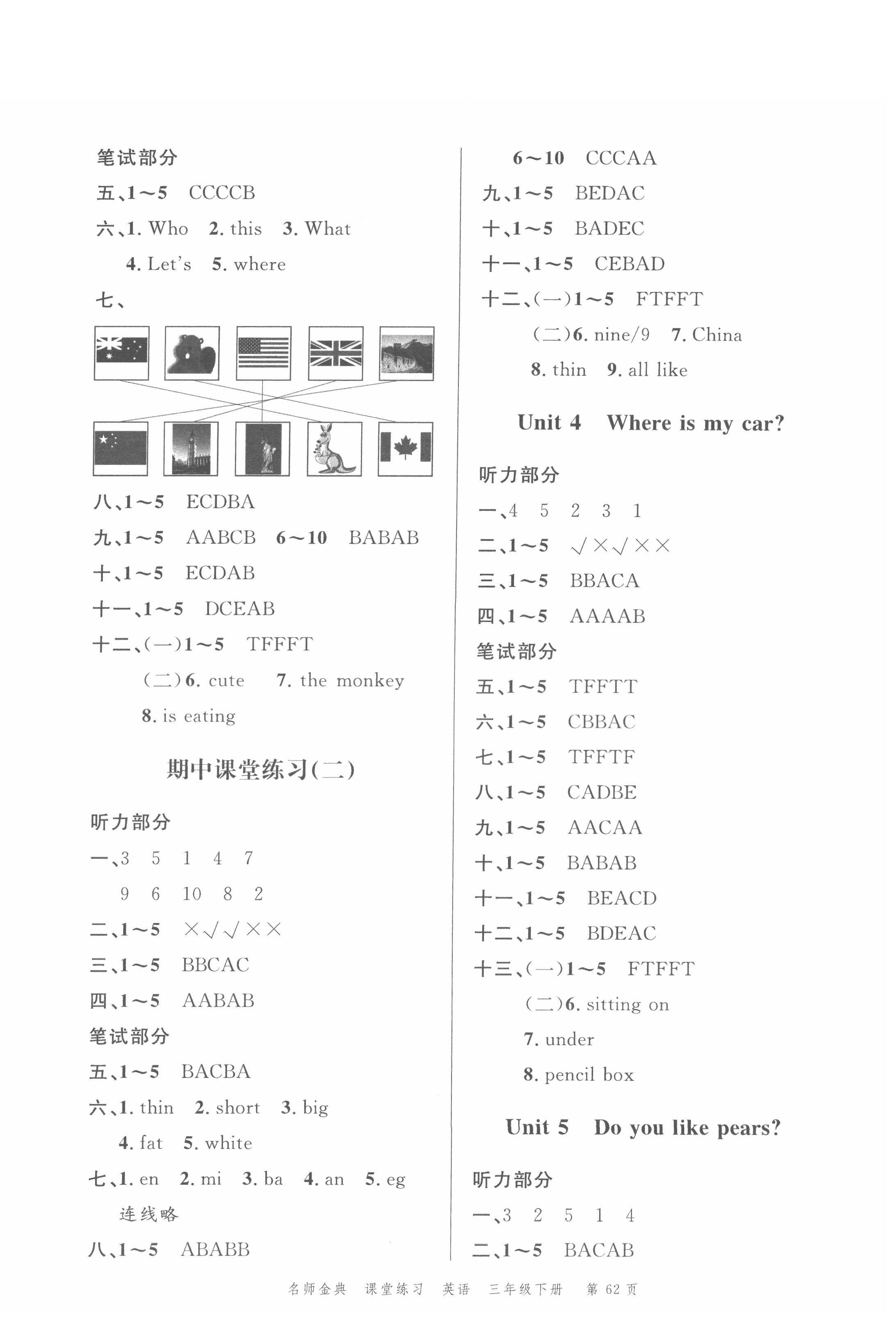 注:目前有些书本章节名称可能整理的还不是很完善,但都是按照顺序排列的,请同学们按照顺序仔细查找。练习册 2022年南粤学典名师金典测试卷三年级英语下册人教版 答案主要是用来给同学们做完题方便对答案用的,请勿直接抄袭。