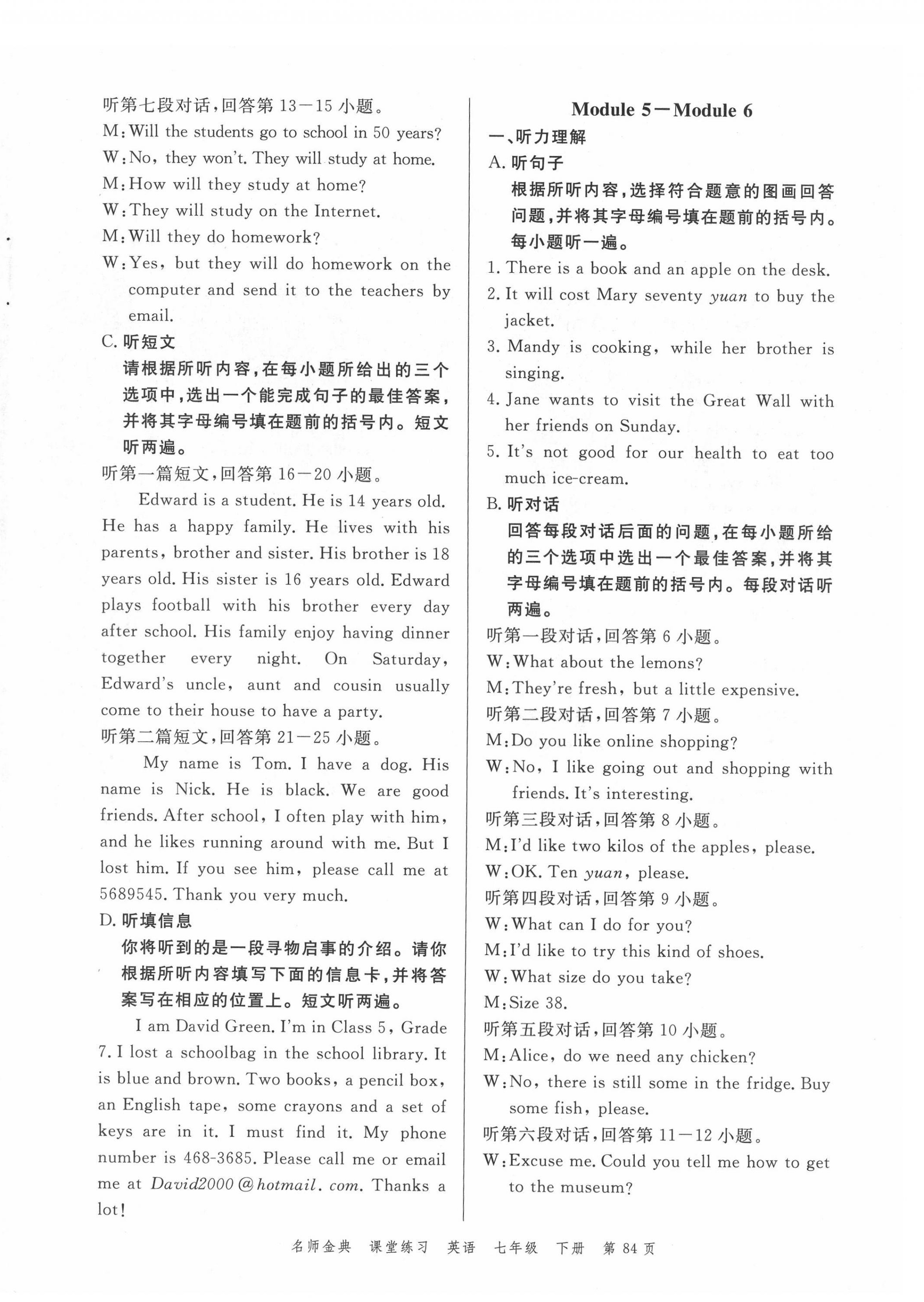 注:目前有些书本章节名称可能整理的还不是很完善,但都是按照顺序排列的,请同学们按照顺序仔细查找。练习册 2022年南粤学典名师金典测试卷七年级英语下册外研版 答案主要是用来给同学们做完题方便对答案用的,请勿直接抄袭。