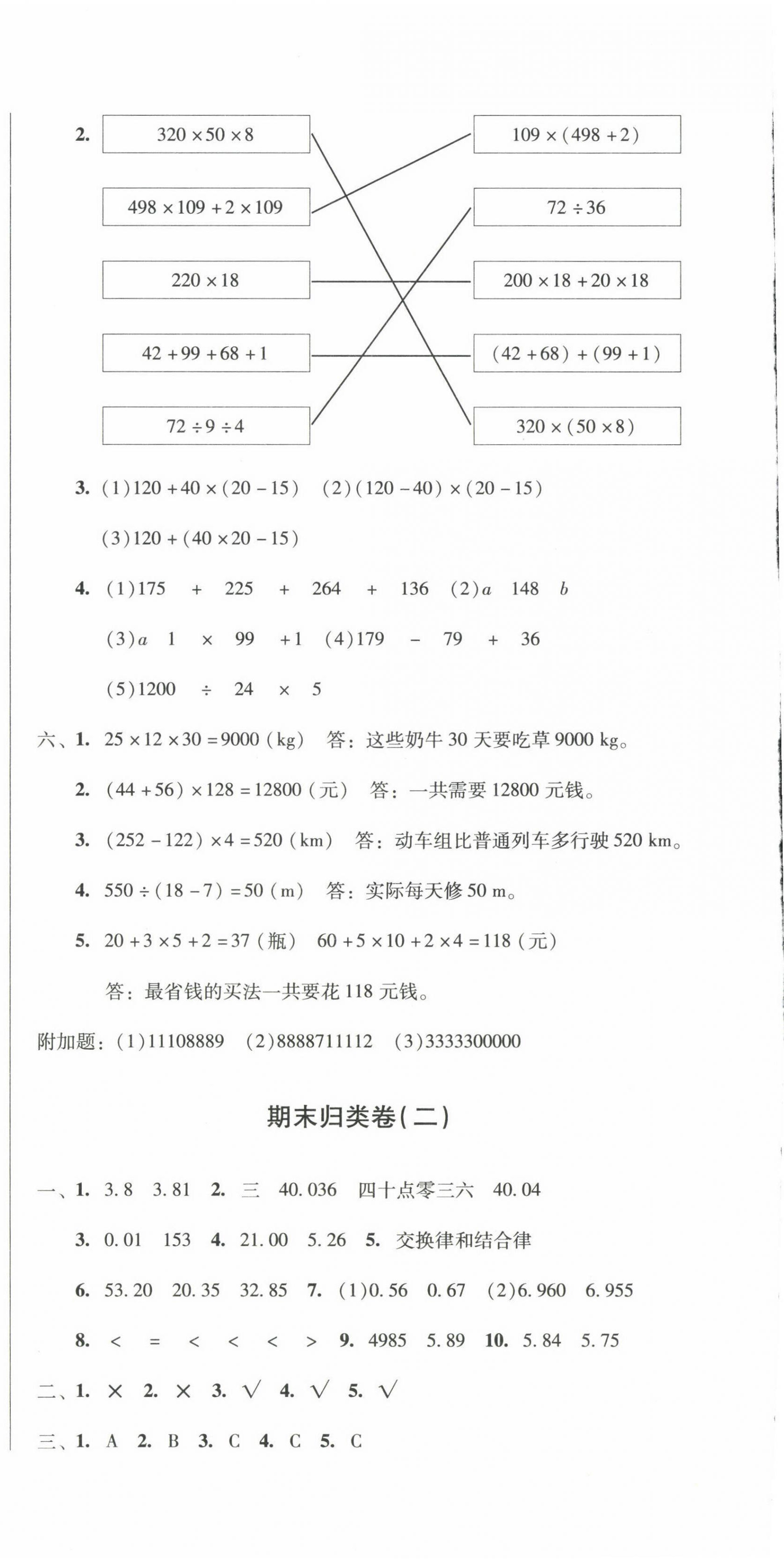 2022年一线名师夺冠王检测卷四年级数学下册人教版
