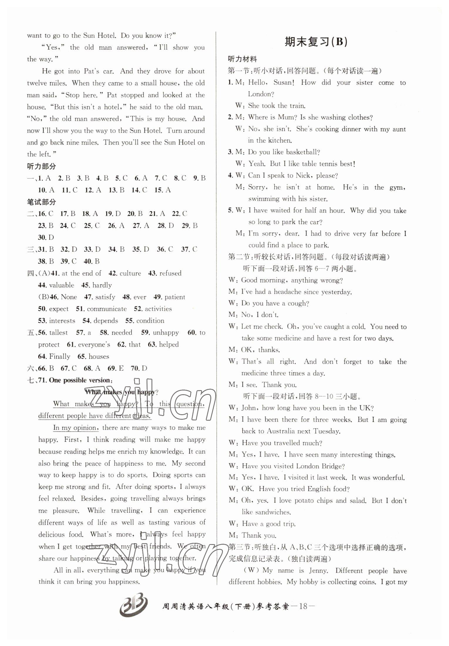 注:目前有些书本章节名称可能整理的还不是很完善,但都是按照顺序排列的,请同学们按照顺序仔细查找。练习册 2022年周周清检测八年级英语下册外研版 答案主要是用来给同学们做完题方便对答案用的,请勿直接抄袭。