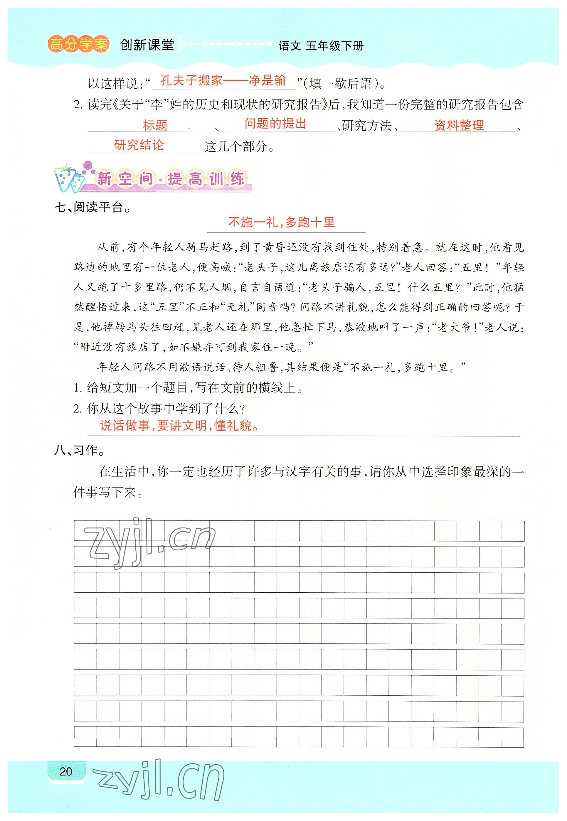 注:目前有些书本章节名称可能整理的还不是很完善,但都是按照顺序排列的,请同学们按照顺序仔细查找。练习册 2022年高分学案创新课堂五年级语文下册人教版 答案主要是用来给同学们做完题方便对答案用的,请勿直接抄袭。