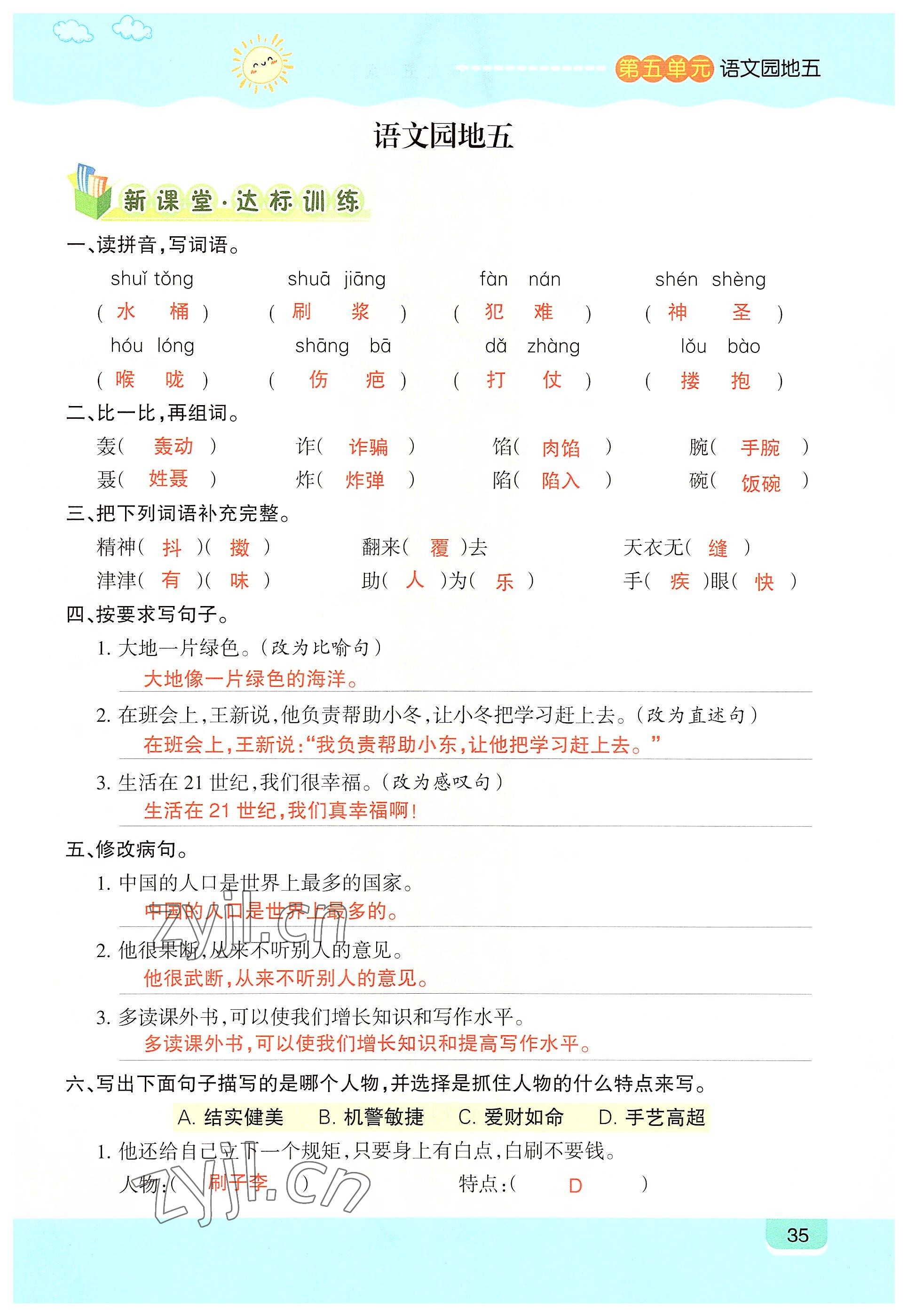 注:目前有些书本章节名称可能整理的还不是很完善,但都是按照顺序排列的,请同学们按照顺序仔细查找。练习册 2022年高分学案创新课堂五年级语文下册人教版 答案主要是用来给同学们做完题方便对答案用的,请勿直接抄袭。