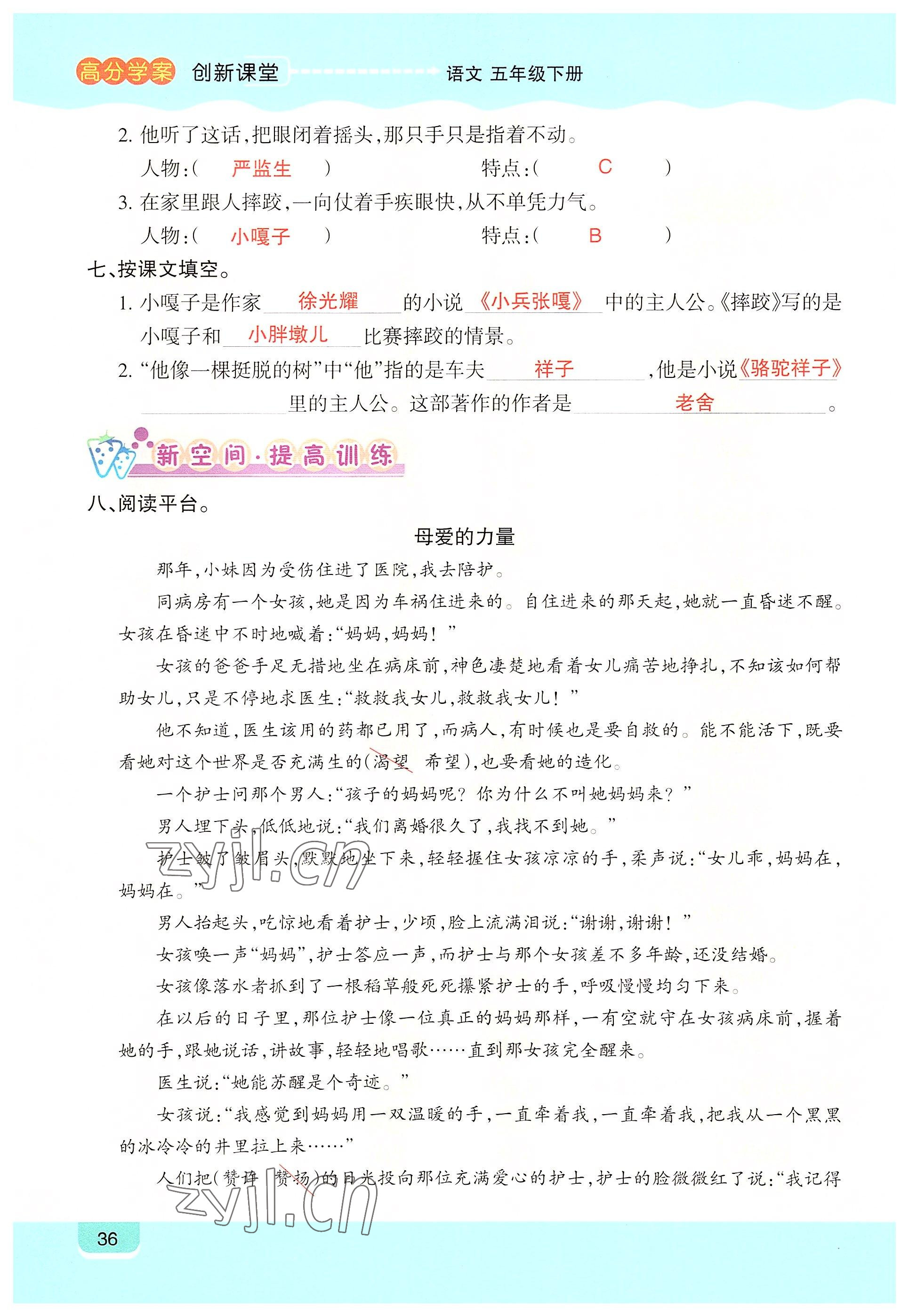 注:目前有些书本章节名称可能整理的还不是很完善,但都是按照顺序排列的,请同学们按照顺序仔细查找。练习册 2022年高分学案创新课堂五年级语文下册人教版 答案主要是用来给同学们做完题方便对答案用的,请勿直接抄袭。