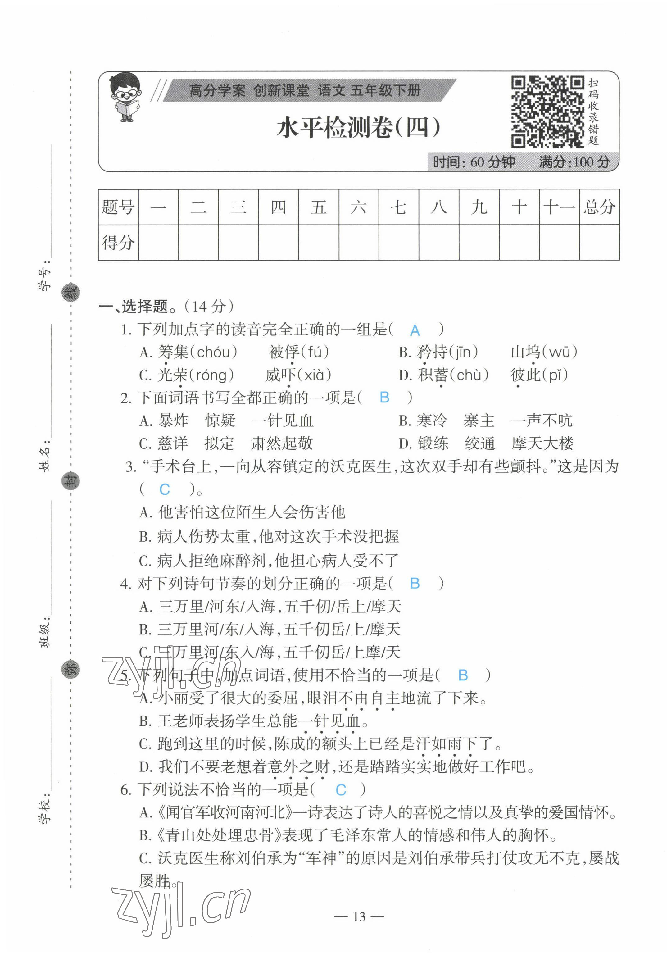 注:目前有些书本章节名称可能整理的还不是很完善,但都是按照顺序排列的,请同学们按照顺序仔细查找。练习册 2022年高分学案创新课堂五年级语文下册人教版 答案主要是用来给同学们做完题方便对答案用的,请勿直接抄袭。