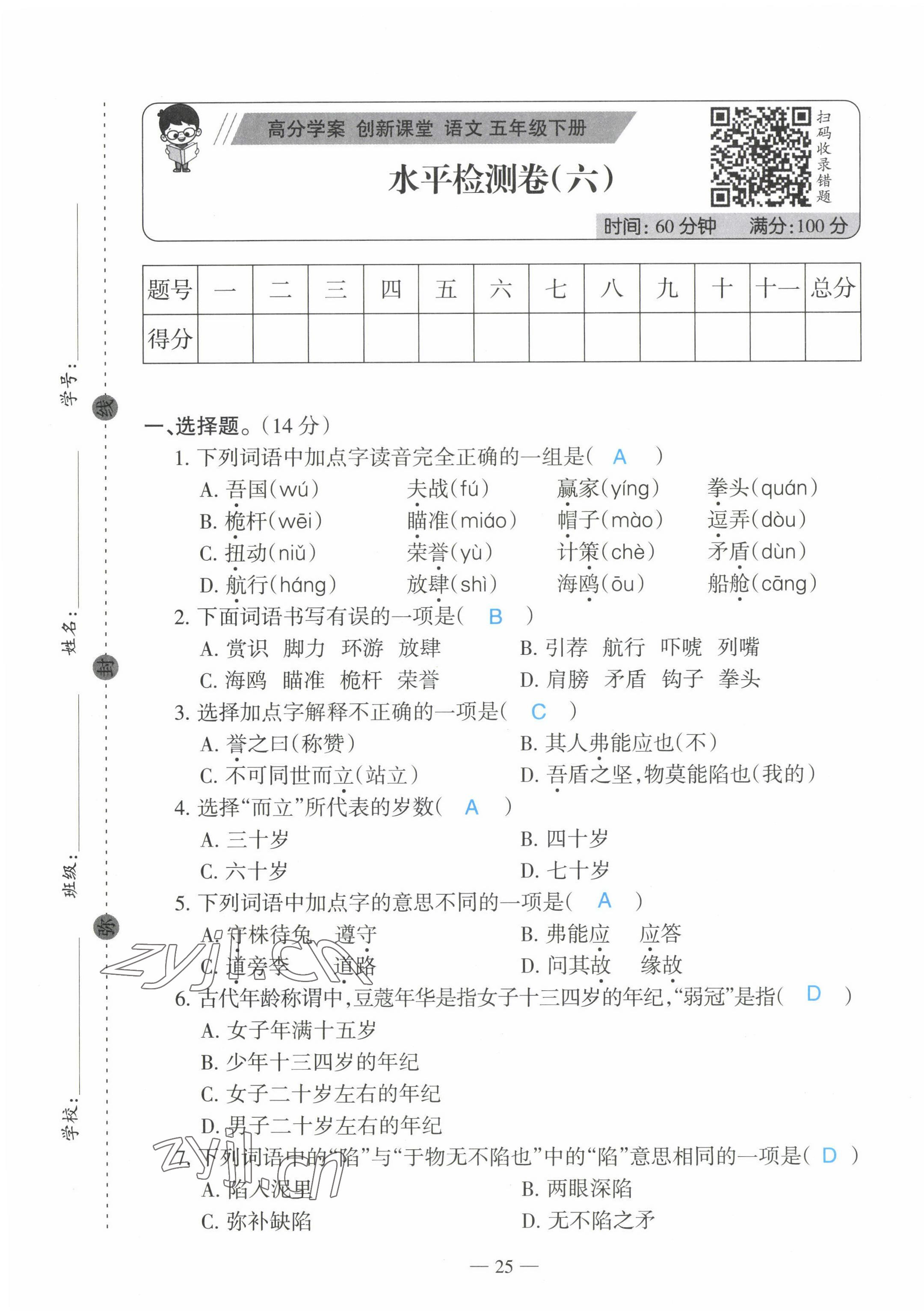 注:目前有些书本章节名称可能整理的还不是很完善,但都是按照顺序排列的,请同学们按照顺序仔细查找。练习册 2022年高分学案创新课堂五年级语文下册人教版 答案主要是用来给同学们做完题方便对答案用的,请勿直接抄袭。