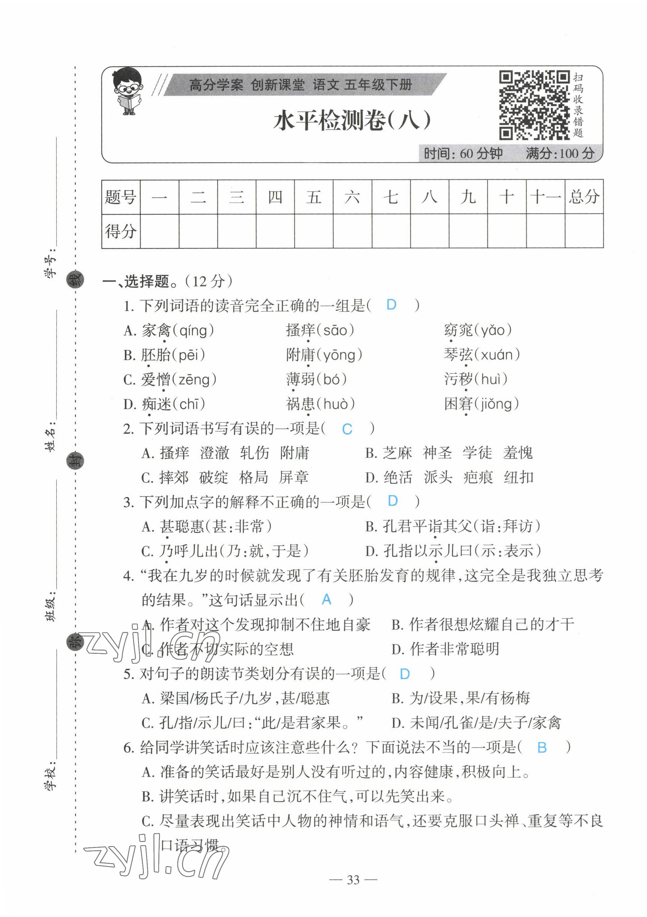 注:目前有些书本章节名称可能整理的还不是很完善,但都是按照顺序排列的,请同学们按照顺序仔细查找。练习册 2022年高分学案创新课堂五年级语文下册人教版 答案主要是用来给同学们做完题方便对答案用的,请勿直接抄袭。