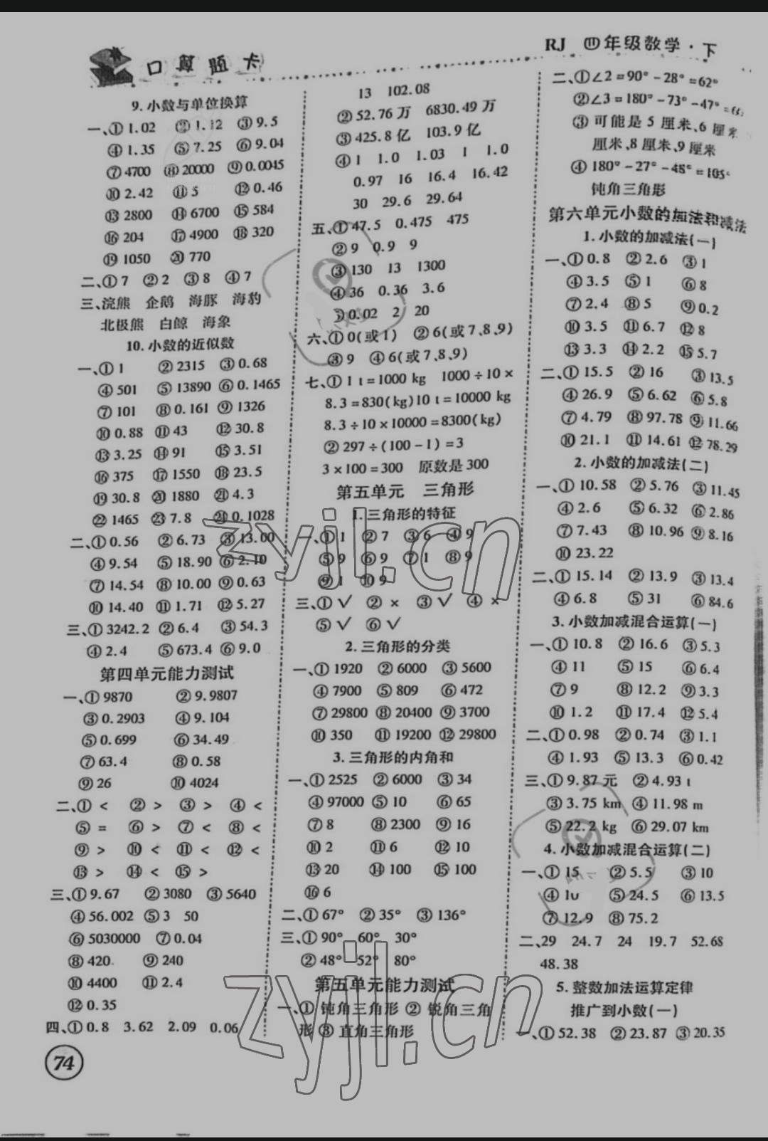 注:目前有些书本章节名称可能整理的还不是很完善,但都是按照顺序排列的,请同学们按照顺序仔细查找。练习册 2022年学而智口算题卡四年级数学下册人教版 答案主要是用来给同学们做完题方便对答案用的,请勿直接抄袭。
