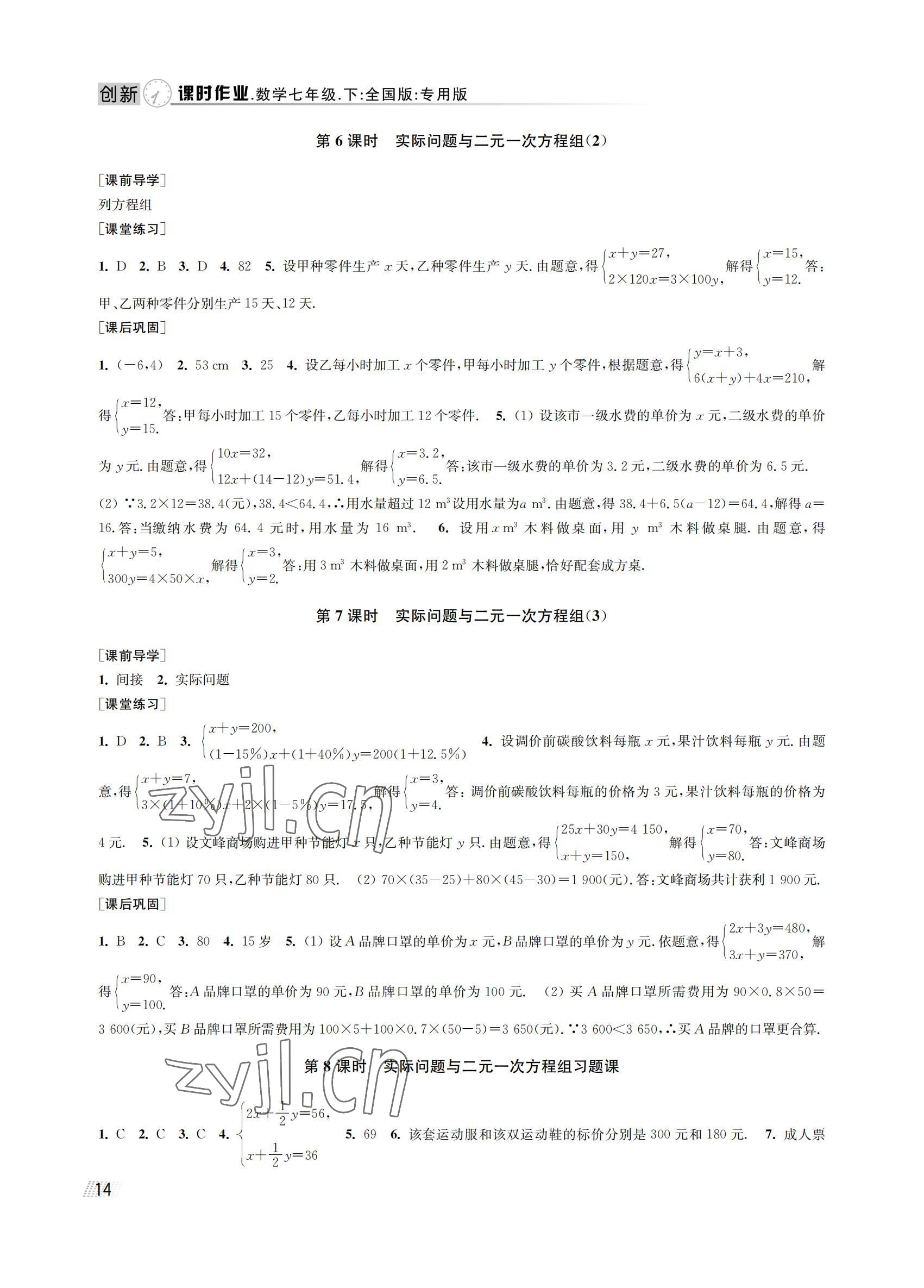 注:目前有些书本章节名称可能整理的还不是很完善,但都是按照顺序排列的,请同学们按照顺序仔细查找。练习册 2022年创新课时作业七年级数学下册人教版全国版专用版 答案主要是用来给同学们做完题方便对答案用的,请勿直接抄袭。