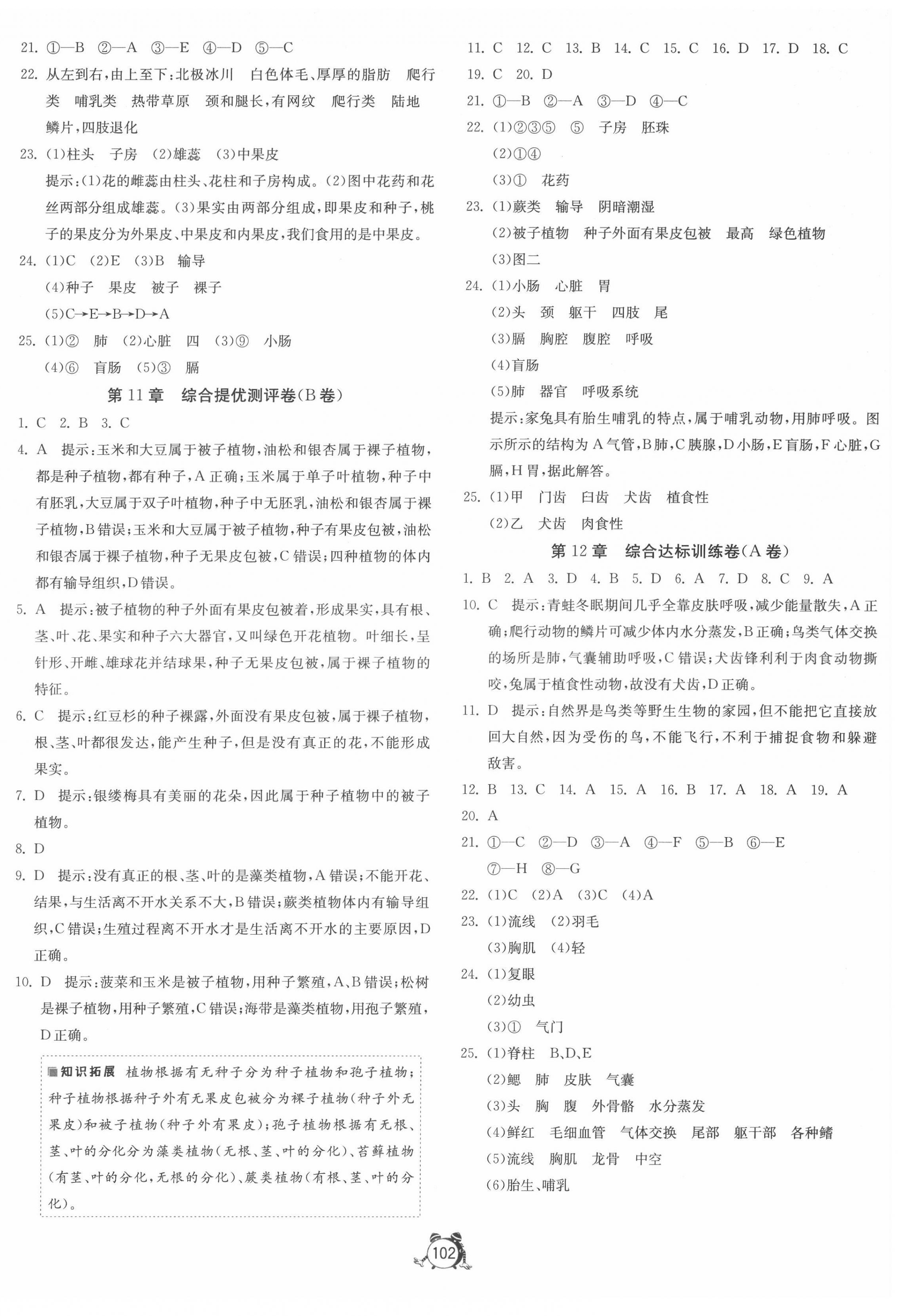 注:目前有些书本章节名称可能整理的还不是很完善,但都是按照顺序排列的,请同学们按照顺序仔细查找。练习册 2022年单元双测全程提优测评卷七年级生物下册苏科版 答案主要是用来给同学们做完题方便对答案用的,请勿直接抄袭。
