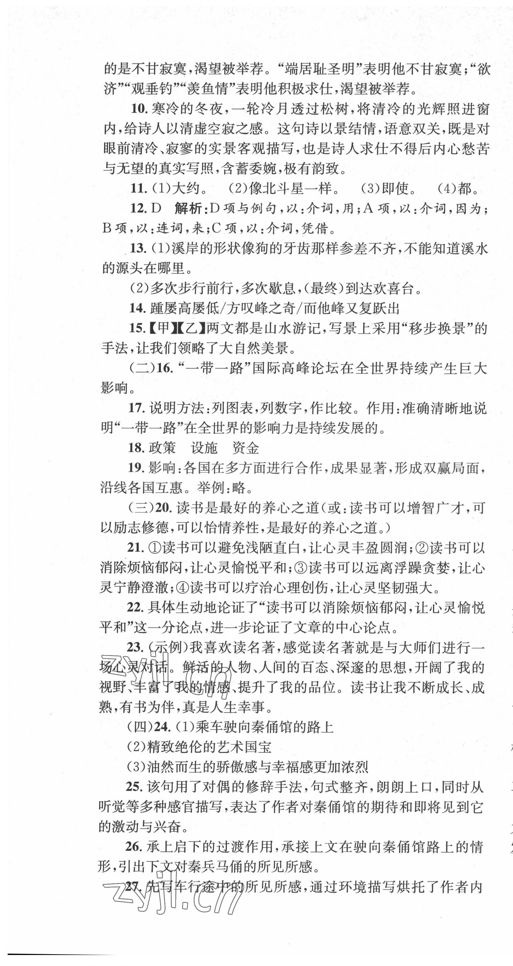 注:目前有些书本章节名称可能整理的还不是很完善,但都是按照顺序排列的,请同学们按照顺序仔细查找。练习册 2022年湘教考苑单元测试卷八年级语文下册人教版 答案主要是用来给同学们做完题方便对答案用的,请勿直接抄袭。