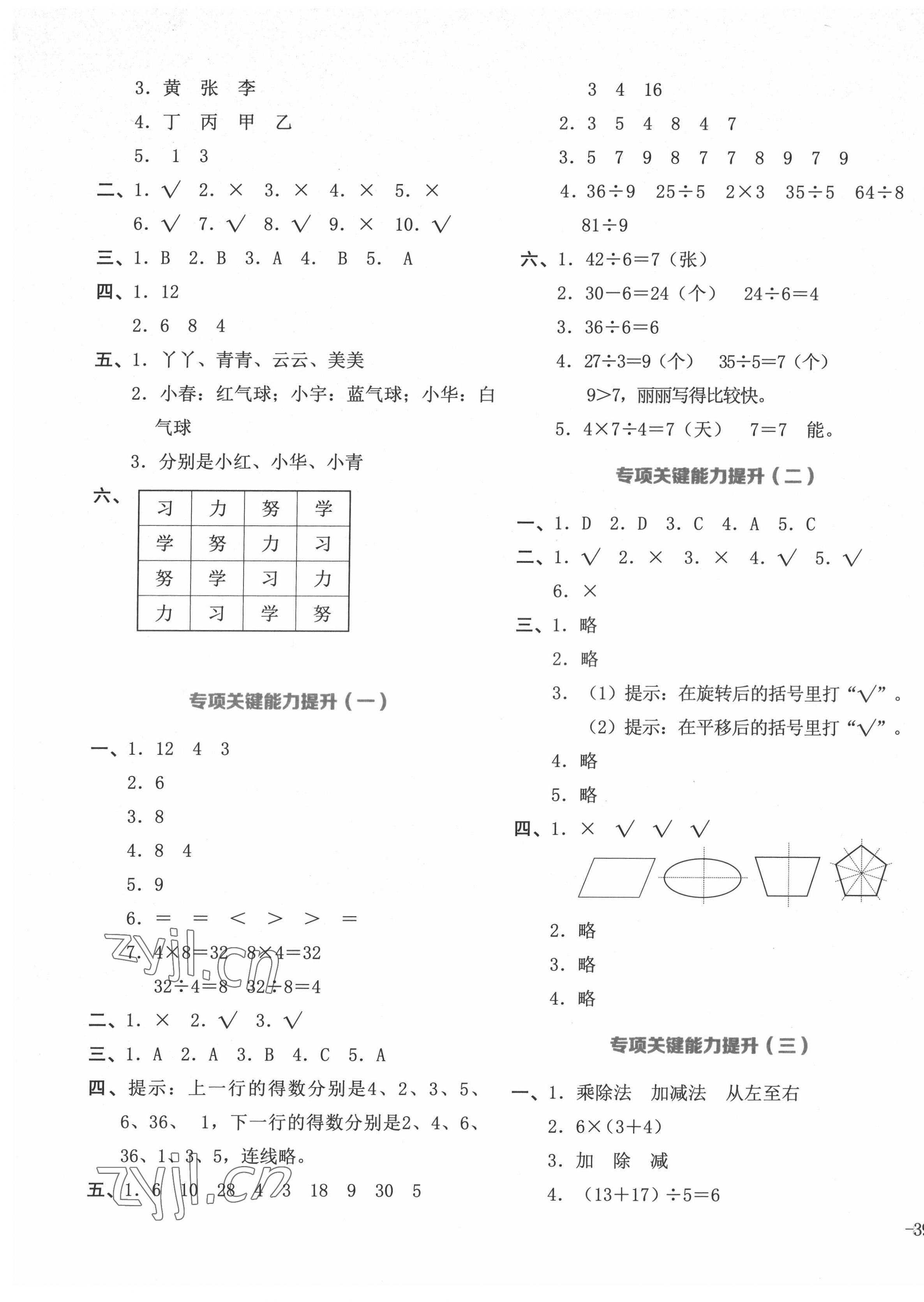 注:目前有些书本章节名称可能整理的还不是很完善,但都是按照顺序排列的,请同学们按照顺序仔细查找。练习册 2022年学科素养与能力提升二年级数学下册人教版 答案主要是用来给同学们做完题方便对答案用的,请勿直接抄袭。