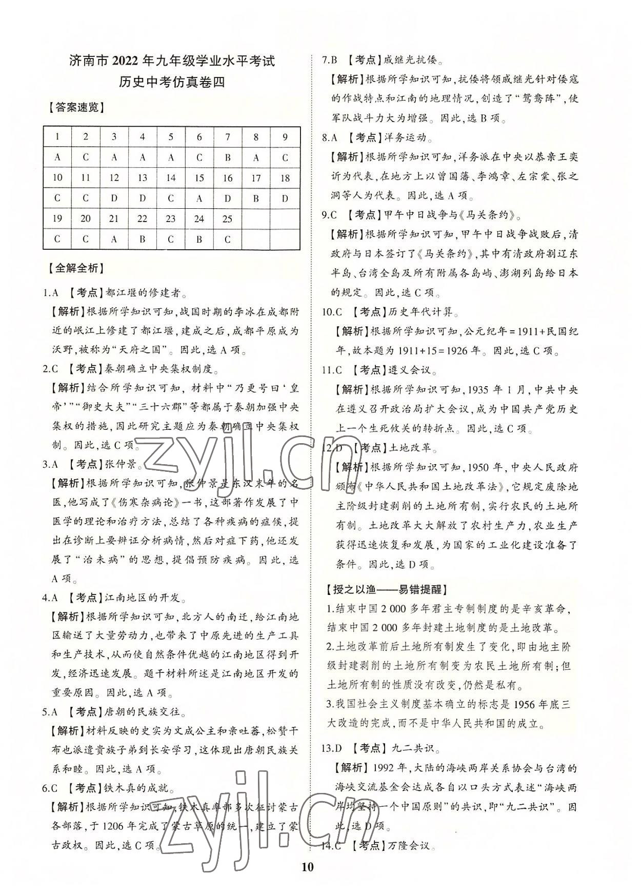 《2022年初中总复习手册中考仿真卷历史济南专版》