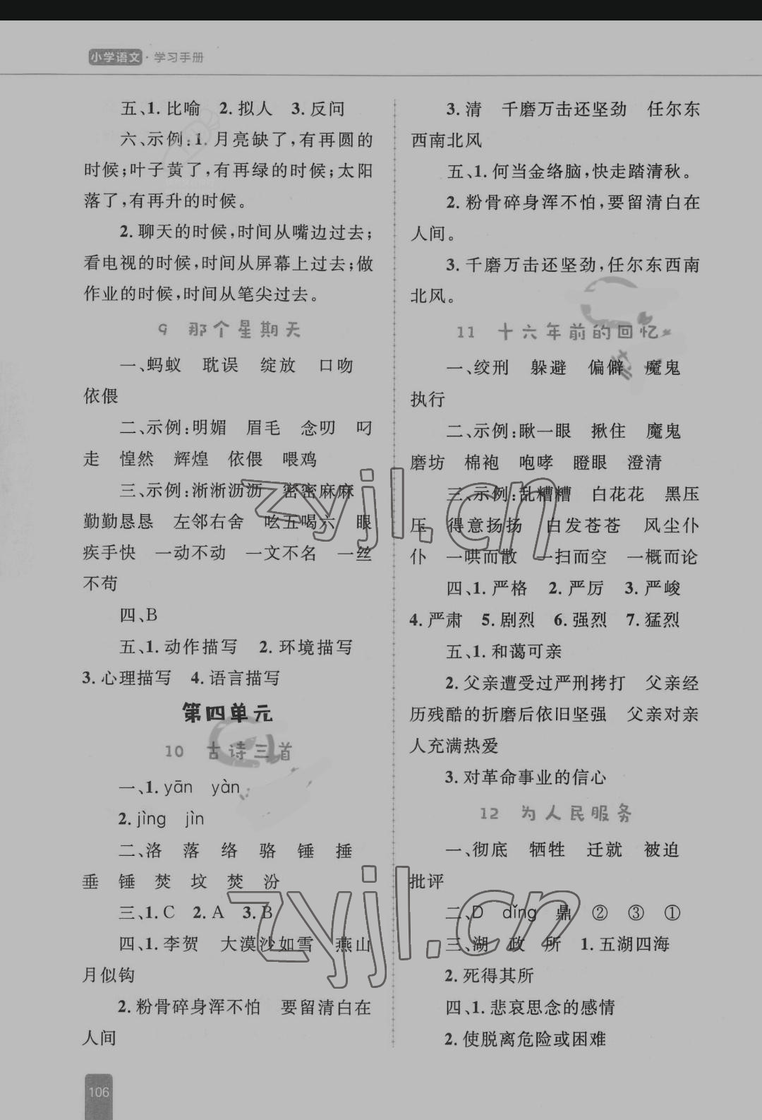 注:目前有些书本章节名称可能整理的还不是很完善,但都是按照顺序排列的,请同学们按照顺序仔细查找。练习册 2022年小学同步优化设计学习手册六年级语文下册人教版 答案主要是用来给同学们做完题方便对答案用的,请勿直接抄袭。