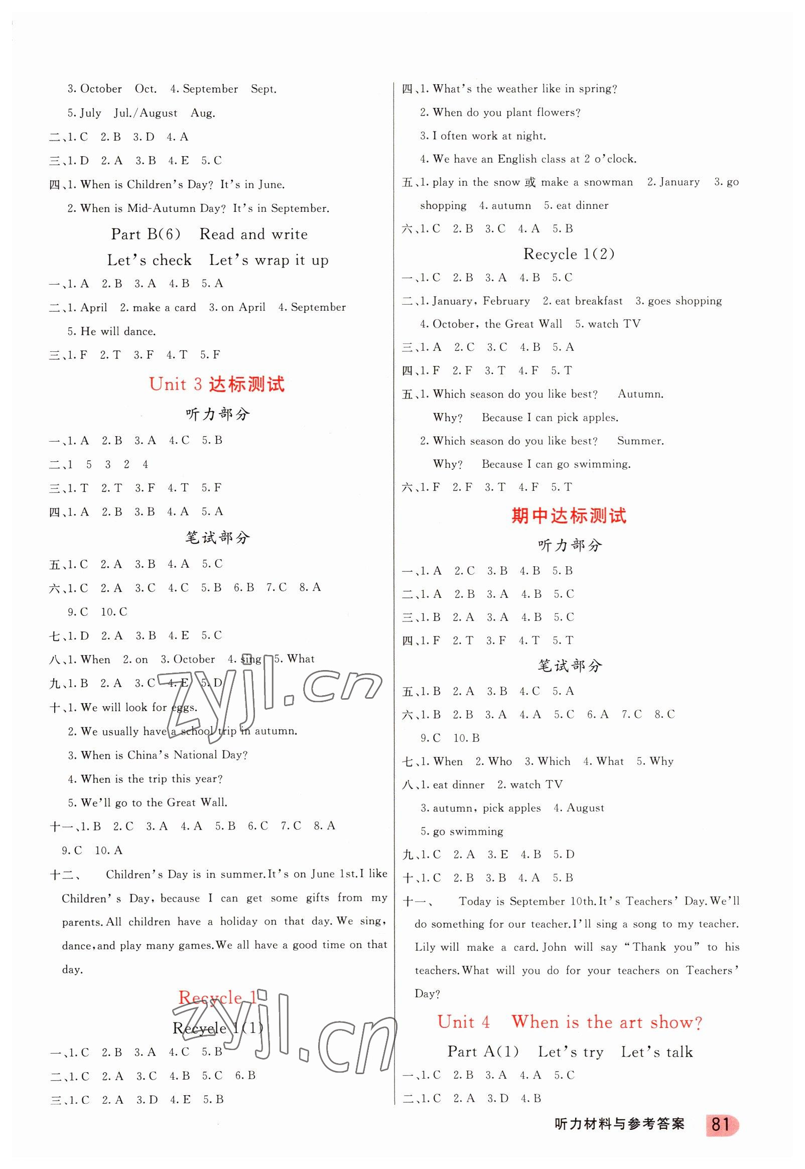 注:目前有些书本章节名称可能整理的还不是很完善,但都是按照顺序排列的,请同学们按照顺序仔细查找。练习册 2022年亮点激活提优天天练五年级英语下册人教版广东专版 答案主要是用来给同学们做完题方便对答案用的,请勿直接抄袭。