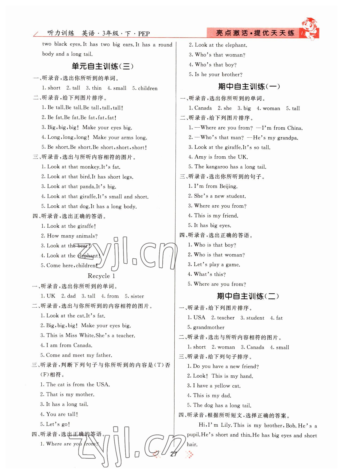 注:目前有些书本章节名称可能整理的还不是很完善,但都是按照顺序排列的,请同学们按照顺序仔细查找。练习册 2022年亮点激活提优天天练三年级英语下册人教版广东专版 答案主要是用来给同学们做完题方便对答案用的,请勿直接抄袭。