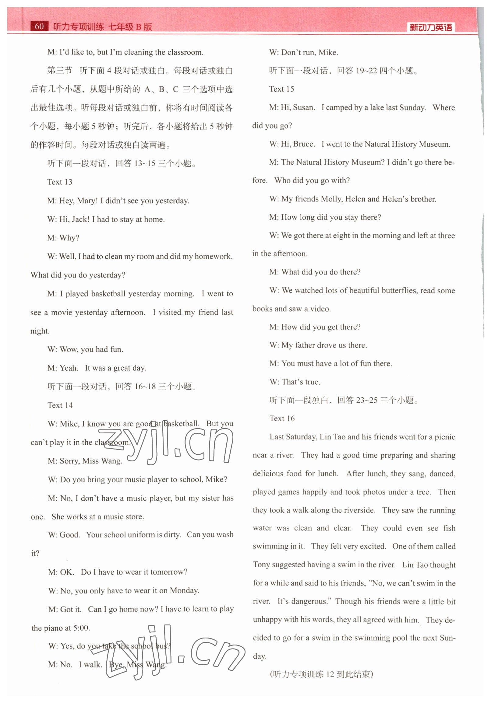 2022年新动力听力专项训练七年级英语人教版B
