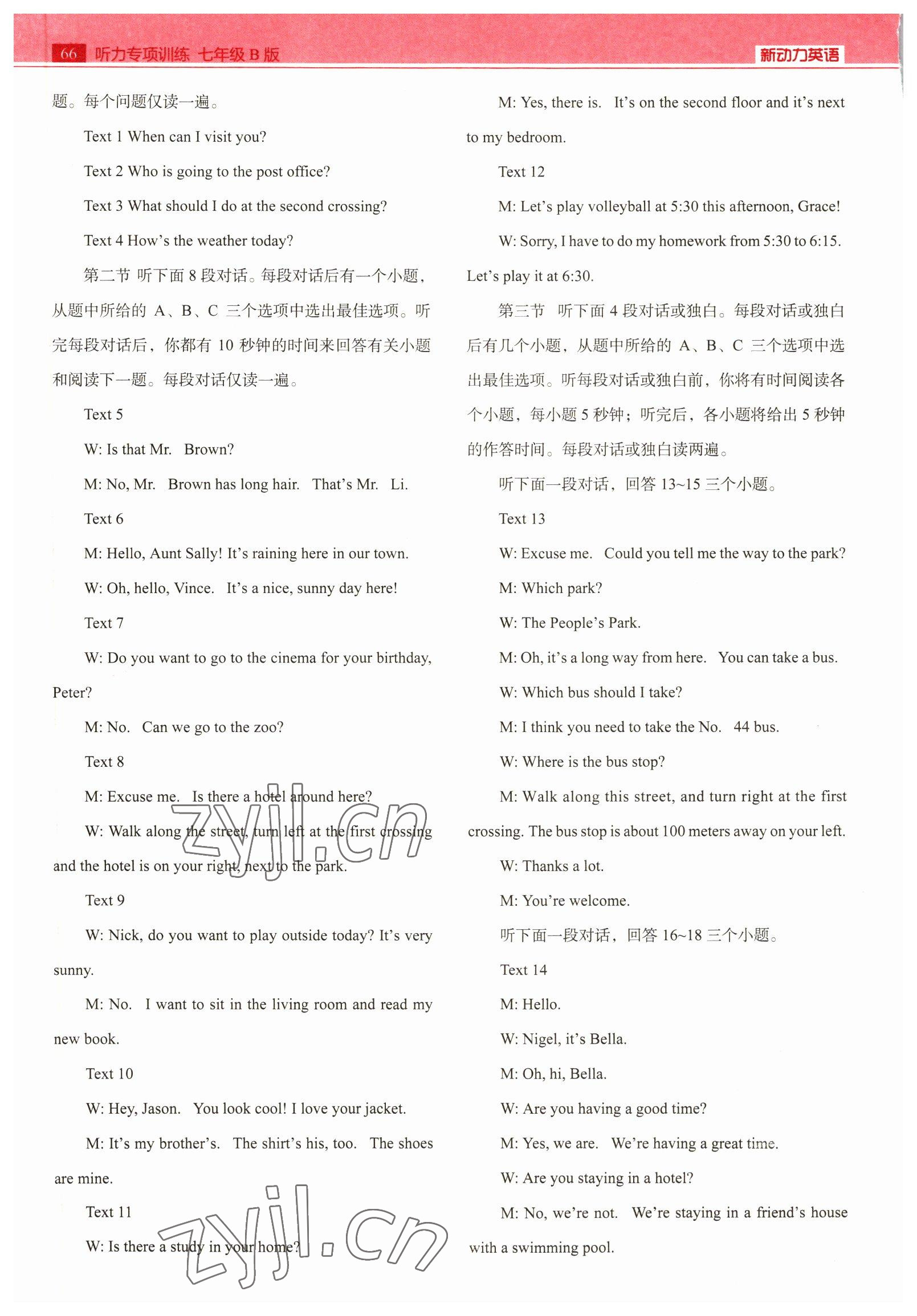 2022年新动力听力专项训练七年级英语人教版B