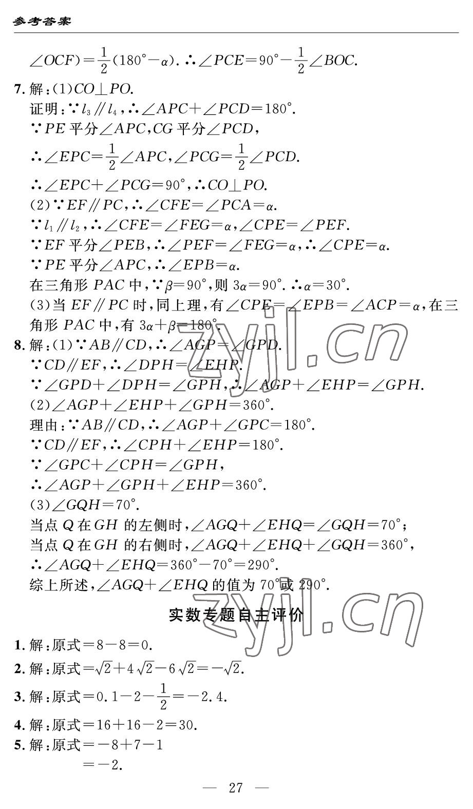 2022年智慧课堂自主评价七年级数学下册人教版宜昌专版