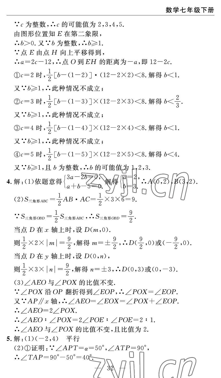 2022年智慧课堂自主评价七年级数学下册人教版宜昌专版
