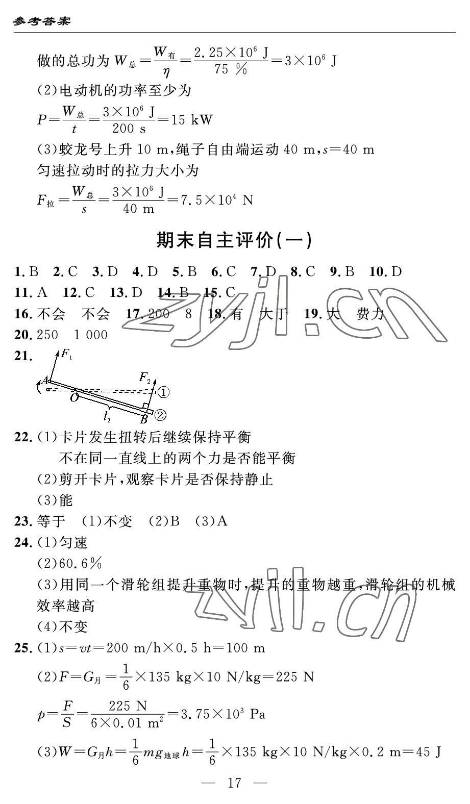 2022年智慧课堂自主评价八年级物理下册人教版宜昌专版