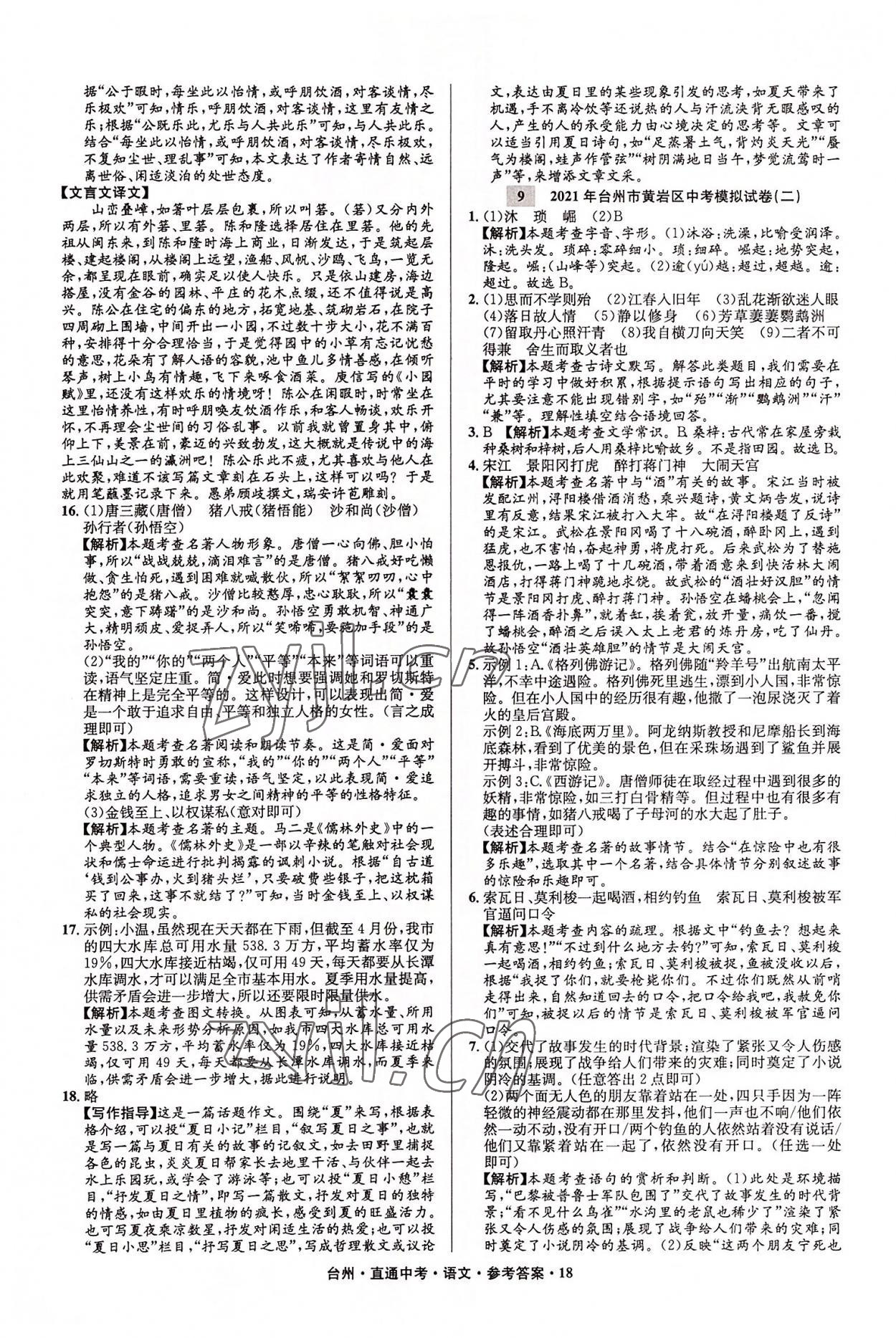 注:目前有些书本章节名称可能整理的还不是很完善,但都是按照顺序排列的,请同学们按照顺序仔细查找。练习册 2022年直通中考中考试题精编语文台州专版 答案主要是用来给同学们做完题方便对答案用的,请勿直接抄袭。