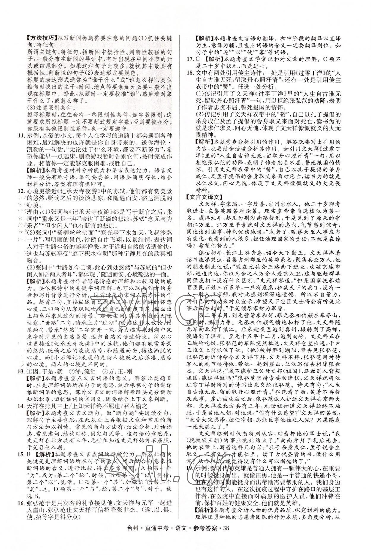 2022年直通中考中考试题精编语文台州专版