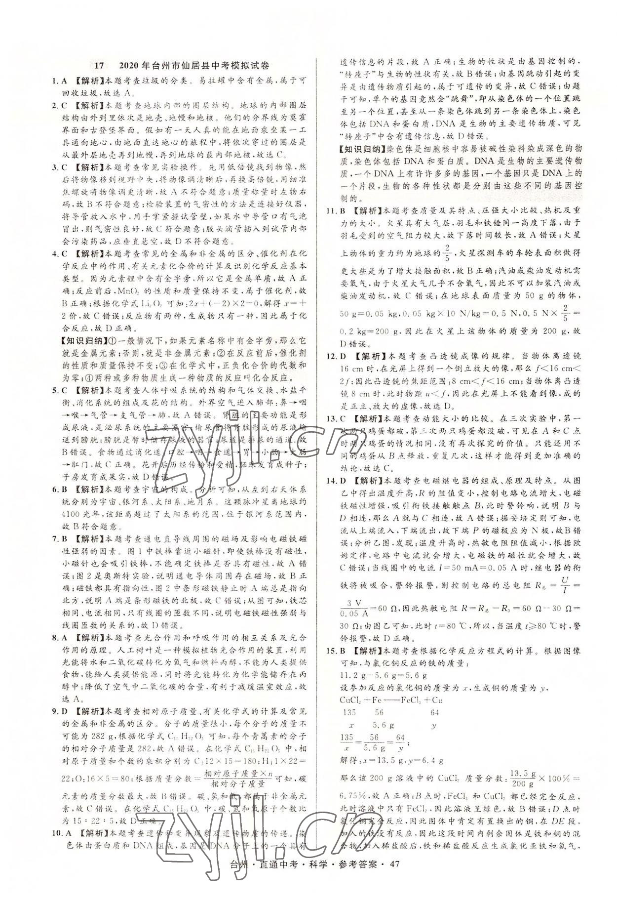 注:目前有些书本章节名称可能整理的还不是很完善,但都是按照顺序排列的,请同学们按照顺序仔细查找。练习册 2022年直通中考中考试题精编科学台州专版 答案主要是用来给同学们做完题方便对答案用的,请勿直接抄袭。