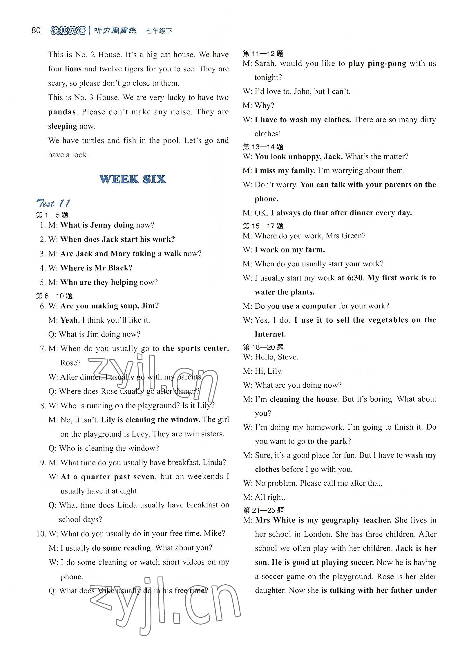 2022年快捷英语周周练听力七年级人教版