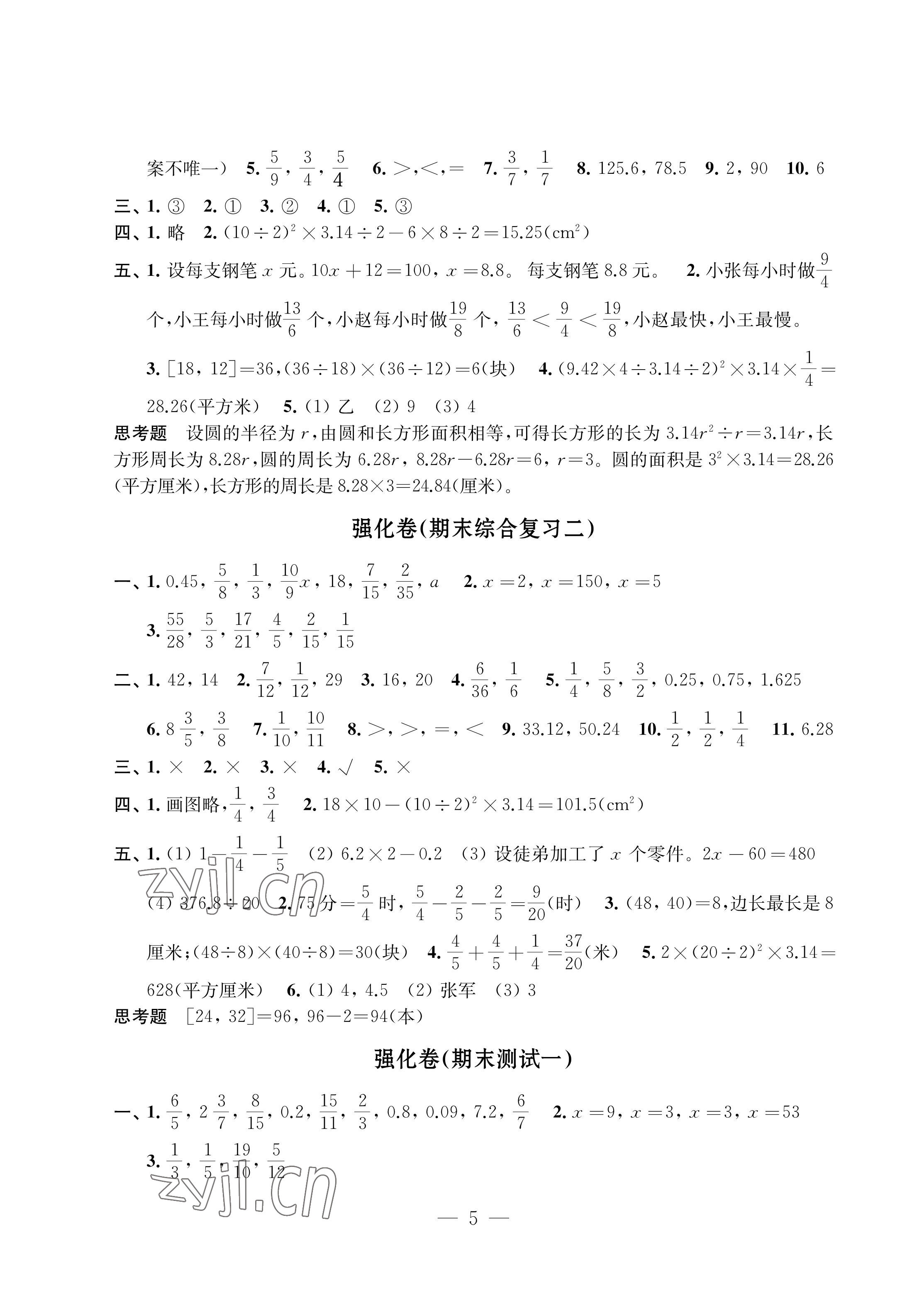 注:目前有些书本章节名称可能整理的还不是很完善,但都是按照顺序排列的,请同学们按照顺序仔细查找。练习册 2022年强化拓展卷五年级数学下册优+版 答案主要是用来给同学们做完题方便对答案用的,请勿直接抄袭。