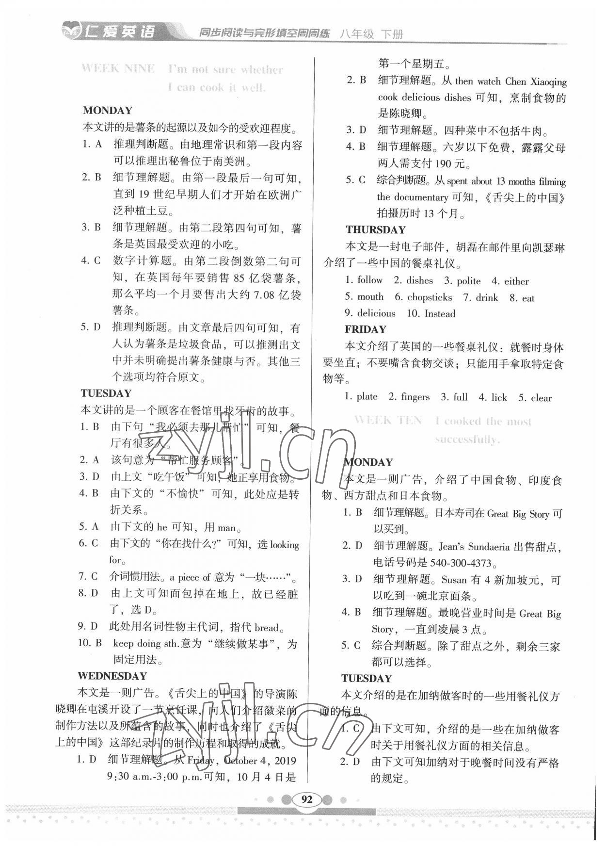 《2022年仁爱英语同步阅读与完形填空周周练八年级下册仁爱版》