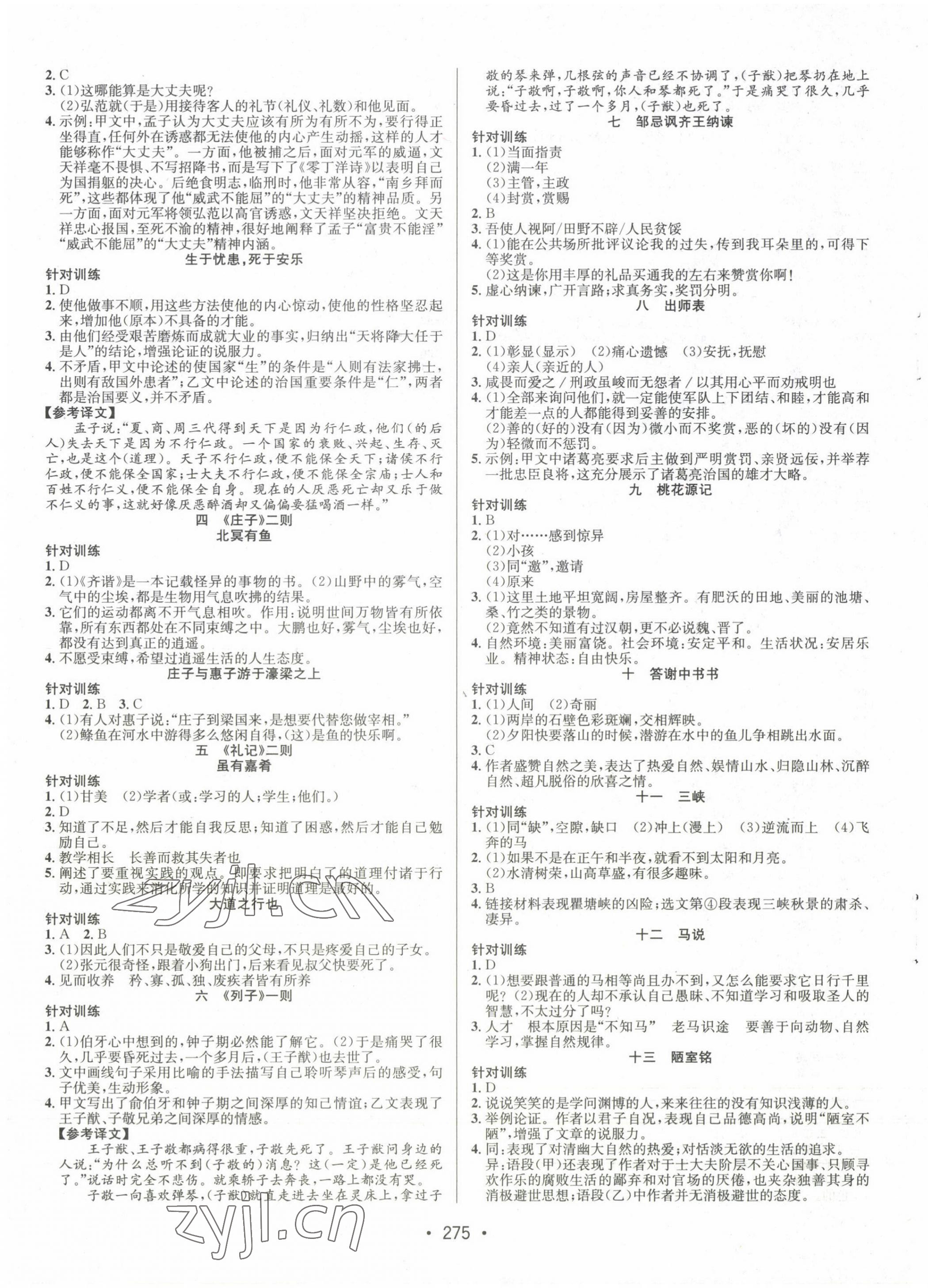注:目前有些书本章节名称可能整理的还不是很完善,但都是按照顺序排列的,请同学们按照顺序仔细查找。练习册 2022年专题讲练3年中考2年模拟语文 答案主要是用来给同学们做完题方便对答案用的,请勿直接抄袭。