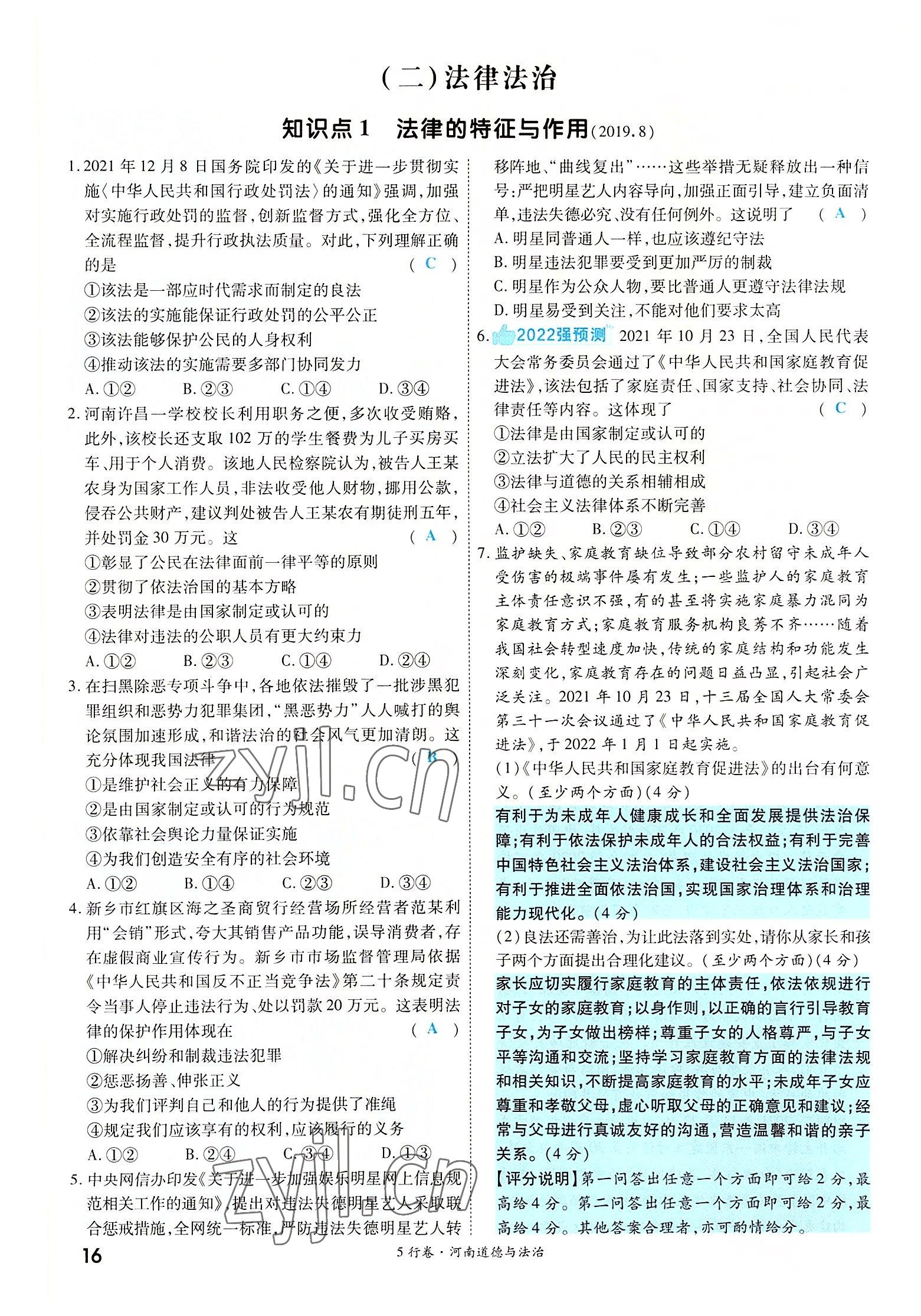 注:目前有些书本章节名称可能整理的还不是很完善,但都是按照顺序排列的,请同学们按照顺序仔细查找。练习册 2022年一战成名5行卷道德与法治河南专版 答案主要是用来给同学们做完题方便对答案用的,请勿直接抄袭。