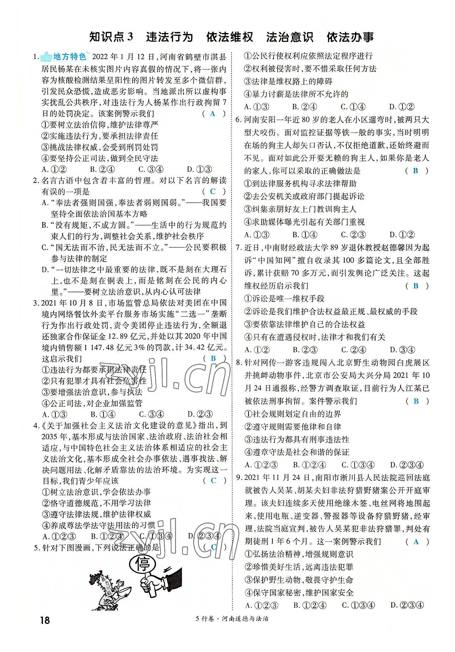 注:目前有些书本章节名称可能整理的还不是很完善,但都是按照顺序排列的,请同学们按照顺序仔细查找。练习册 2022年一战成名5行卷道德与法治河南专版 答案主要是用来给同学们做完题方便对答案用的,请勿直接抄袭。