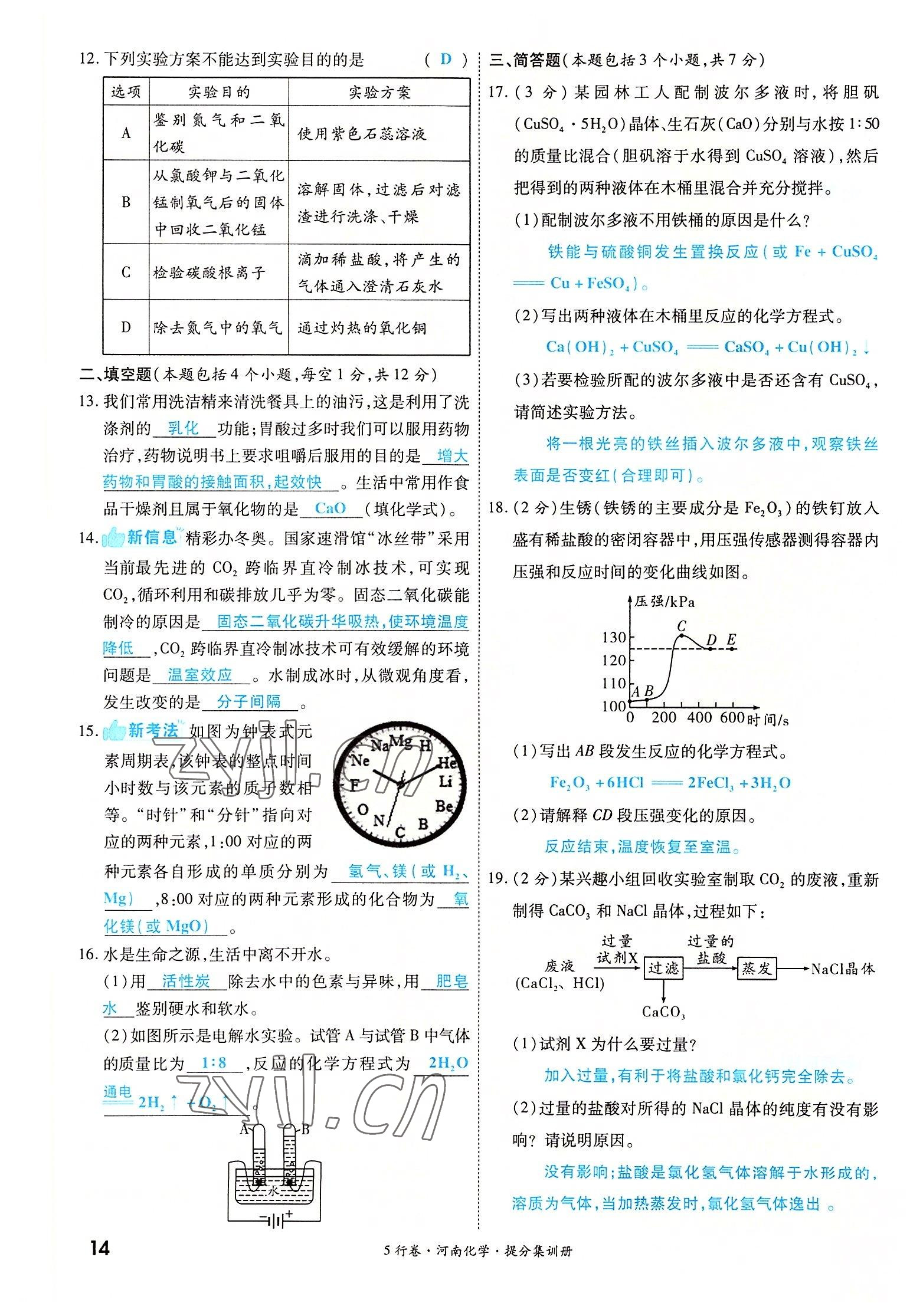 2022年一战成名5行卷化学河南专版