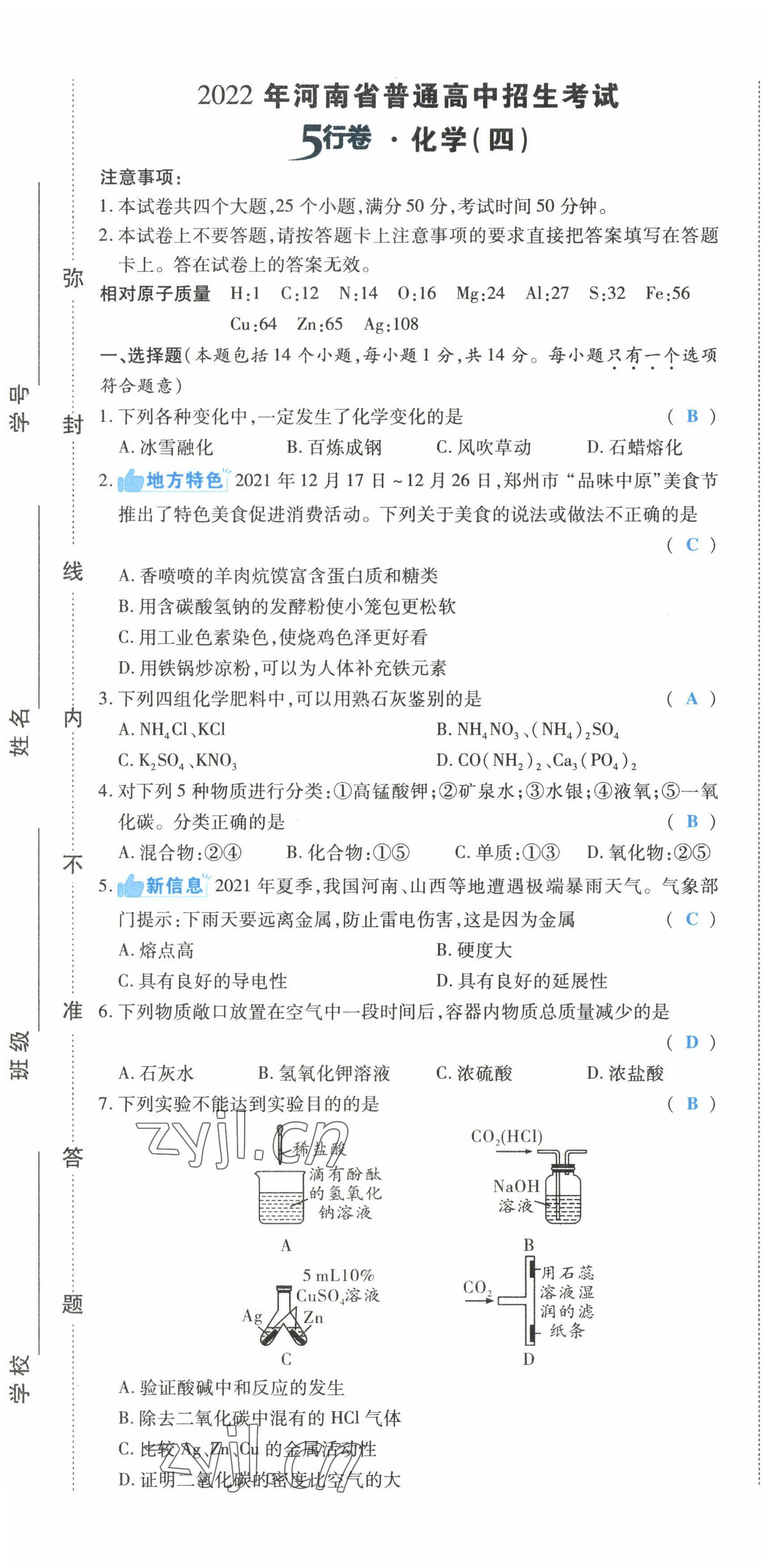注:目前有些书本章节名称可能整理的还不是很完善,但都是按照顺序排列的,请同学们按照顺序仔细查找。练习册 2022年一战成名5行卷化学河南专版 答案主要是用来给同学们做完题方便对答案用的,请勿直接抄袭。