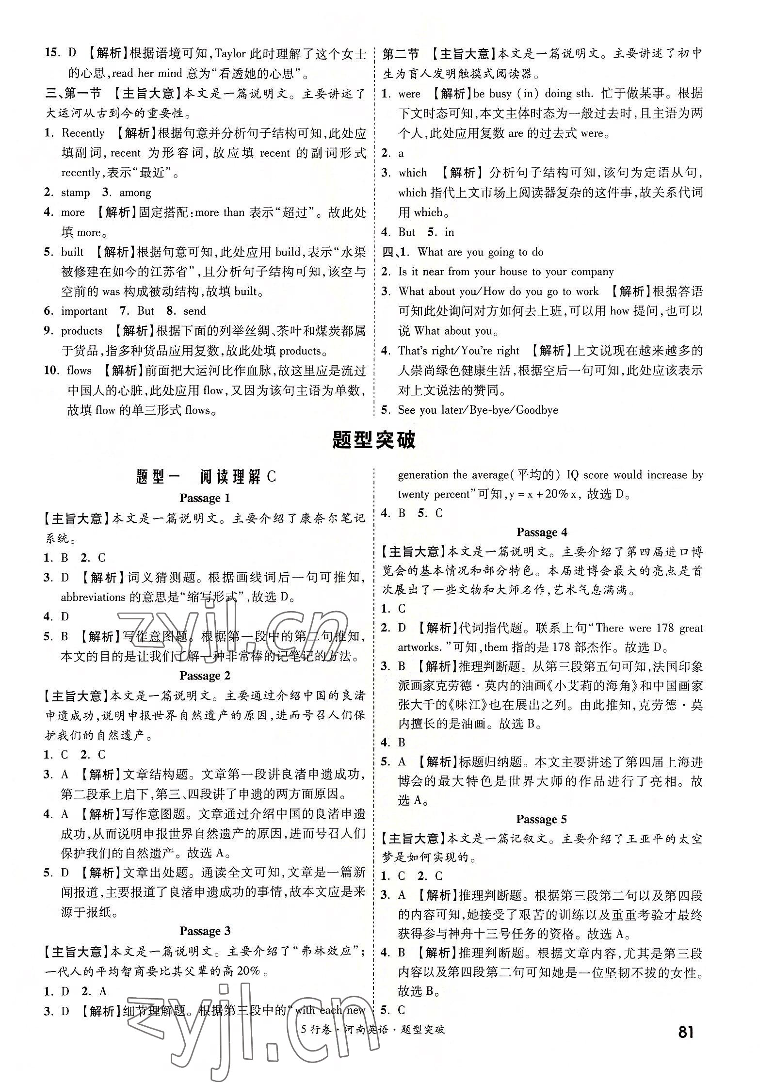注:目前有些书本章节名称可能整理的还不是很完善,但都是按照顺序排列的,请同学们按照顺序仔细查找。练习册 2022年一战成名5行卷英语河南专版 答案主要是用来给同学们做完题方便对答案用的,请勿直接抄袭。