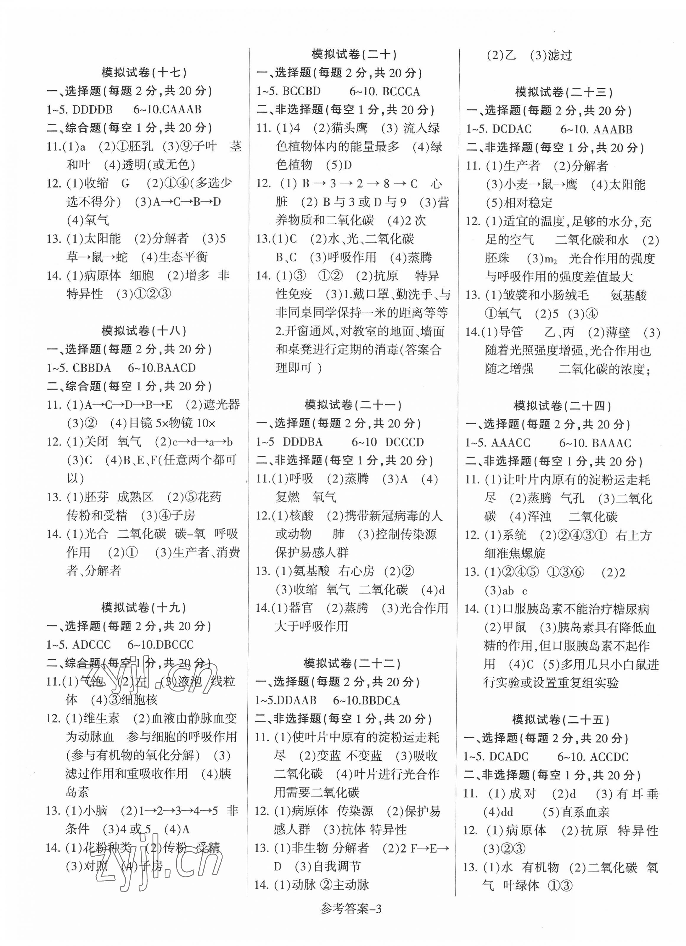 注:目前有些书本章节名称可能整理的还不是很完善,但都是按照顺序排列的,请同学们按照顺序仔细查找。练习册 2022年冲刺中考模拟卷生物徐州地区专用 答案主要是用来给同学们做完题方便对答案用的,请勿直接抄袭。